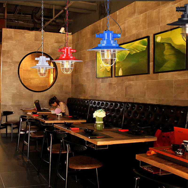 Contemporary Industrial Iron Pot Lid Glass Shade 1-Light Pendant Light For Dining Room