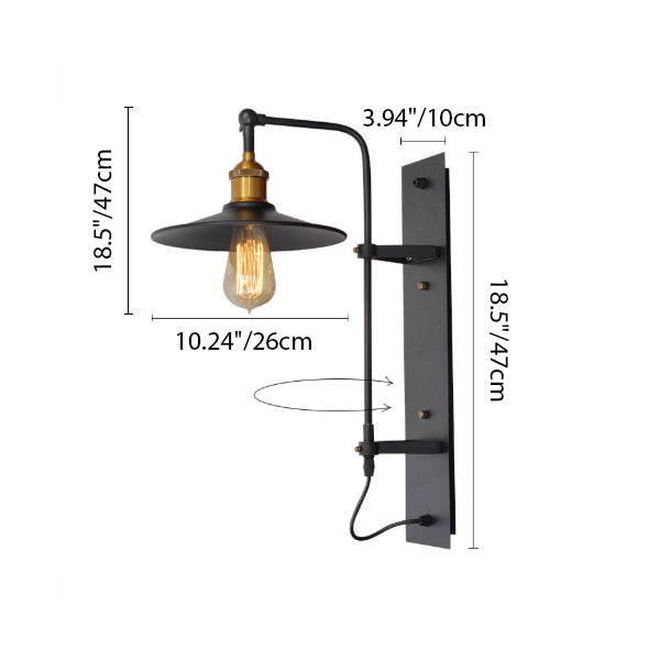 Contemporary Industrial Iron Rotatable Conic 1-Light Wall Sconce Lamp For Living Room