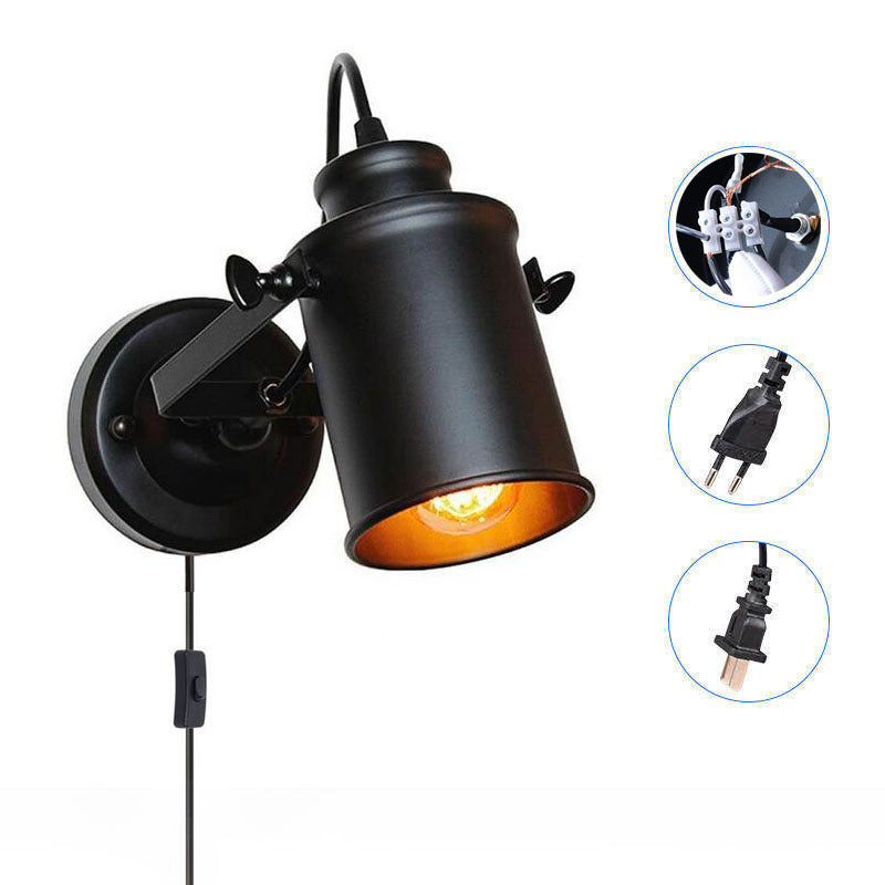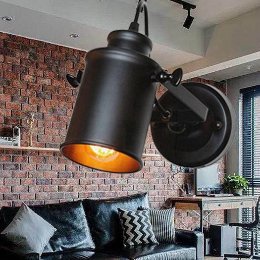 Contemporary Industrial Iron Rotatable Cylinder 1-Light Wall Sconce Lamp For Hallway