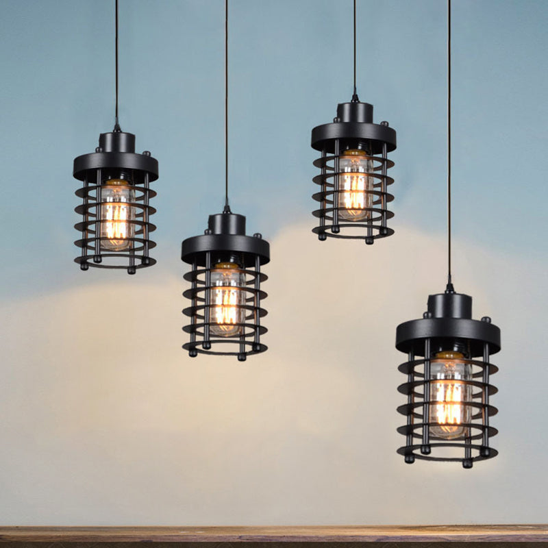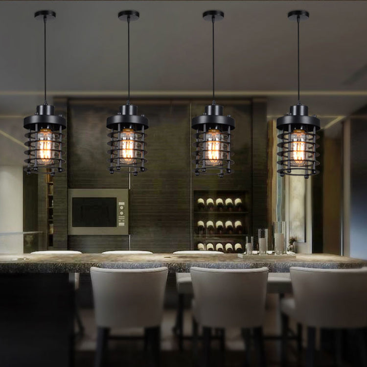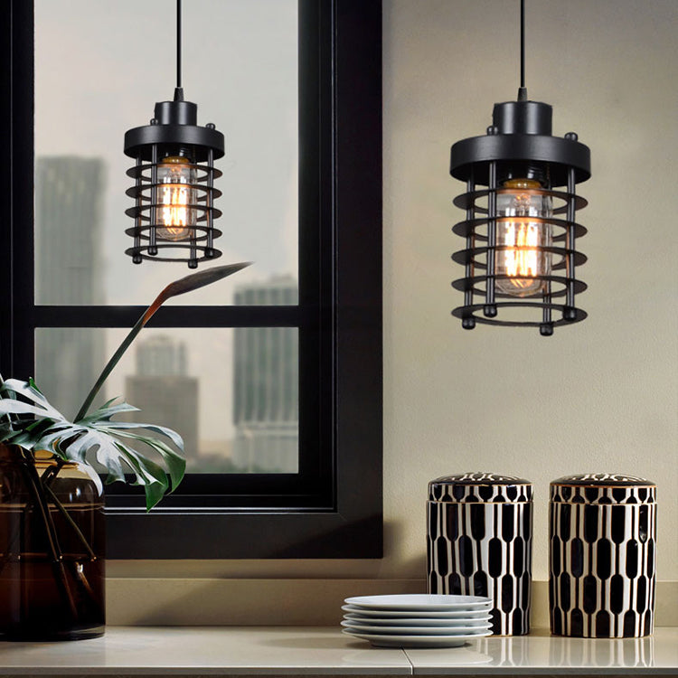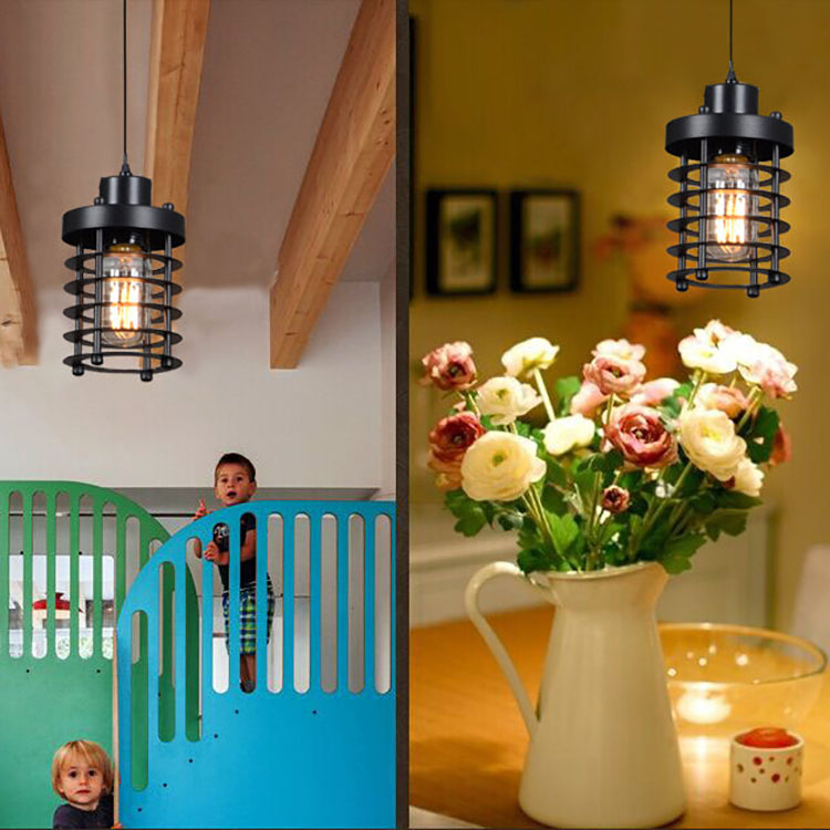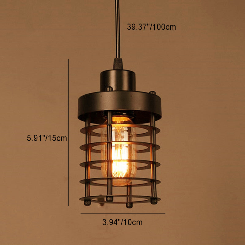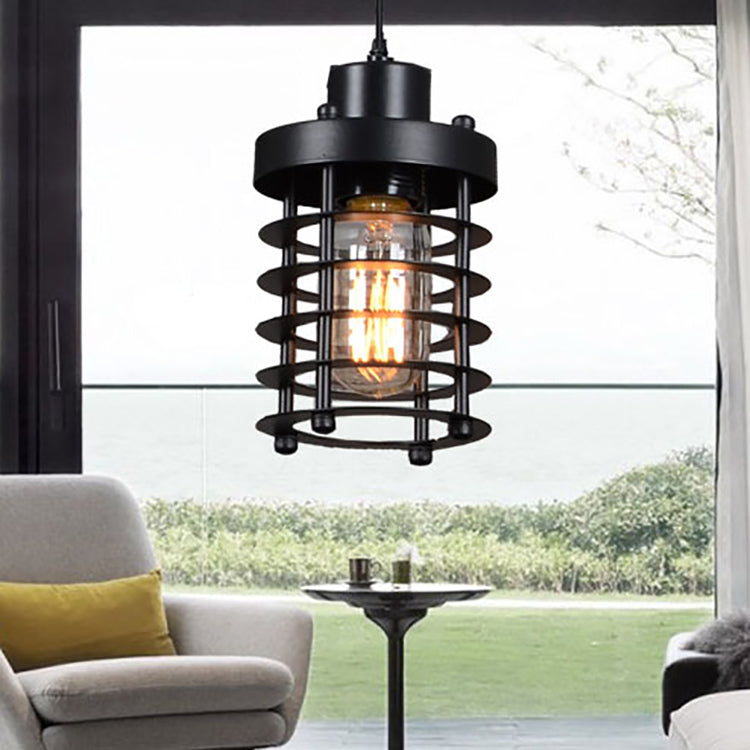 Contemporary Industrial Openwork Cylinder Iron 1-Light Pendant Light For Living Room