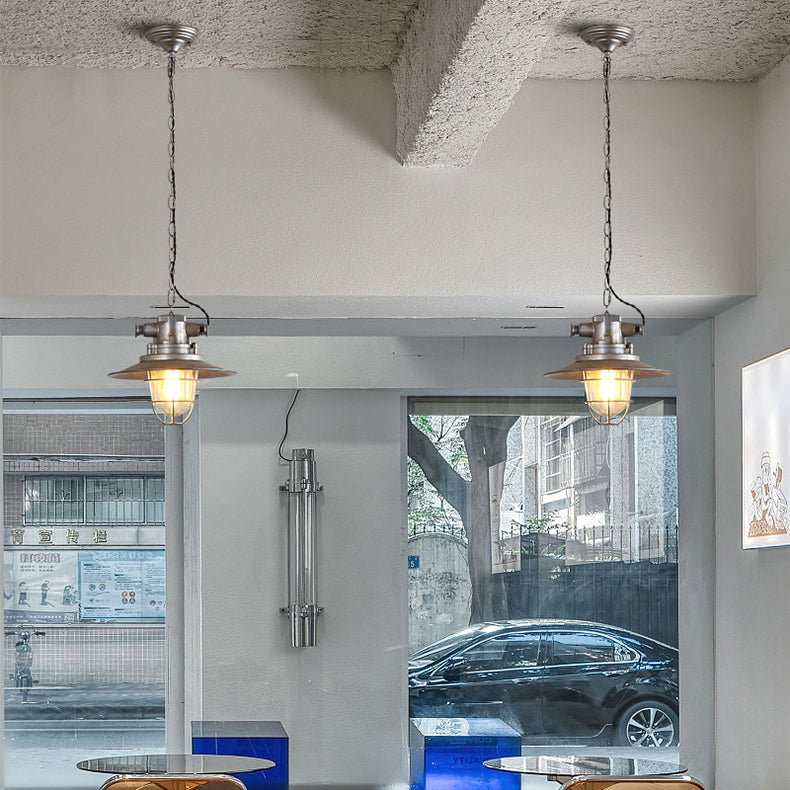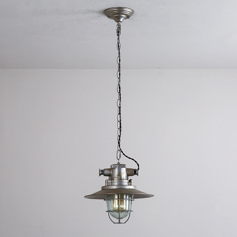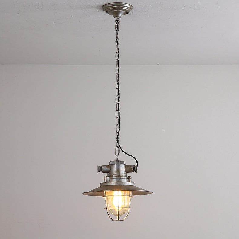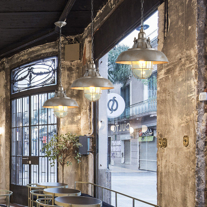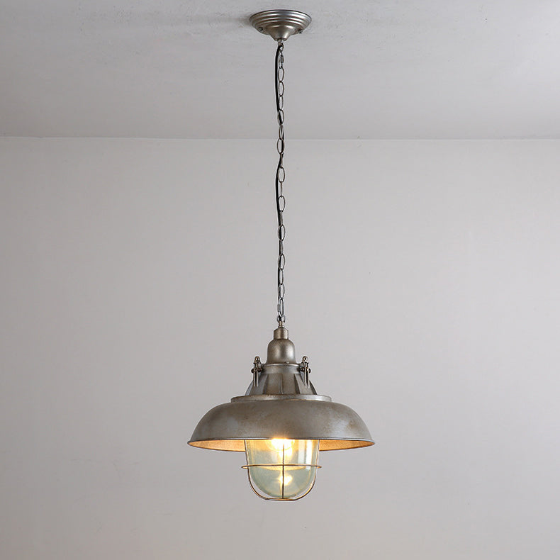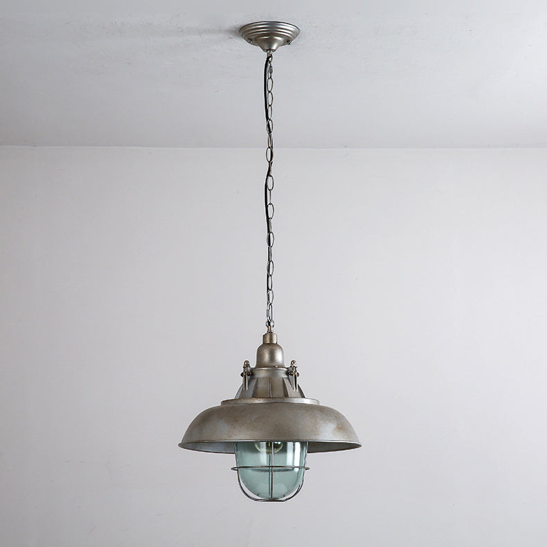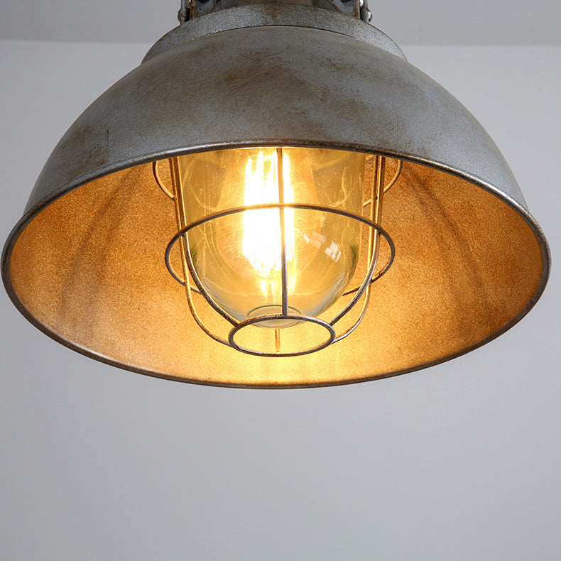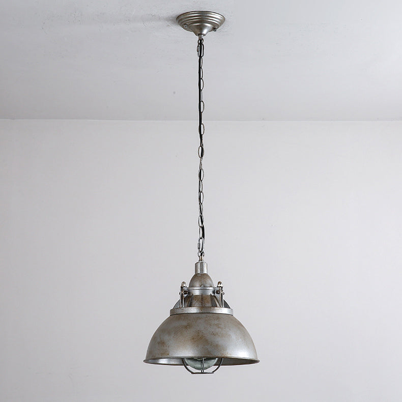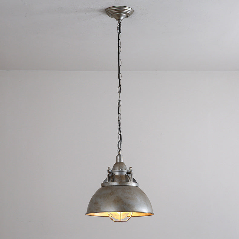 Contemporary Industrial Retro Distressed Gray Aluminum Semicircle Shade 1-Light Pendant Light For Entertainment Room