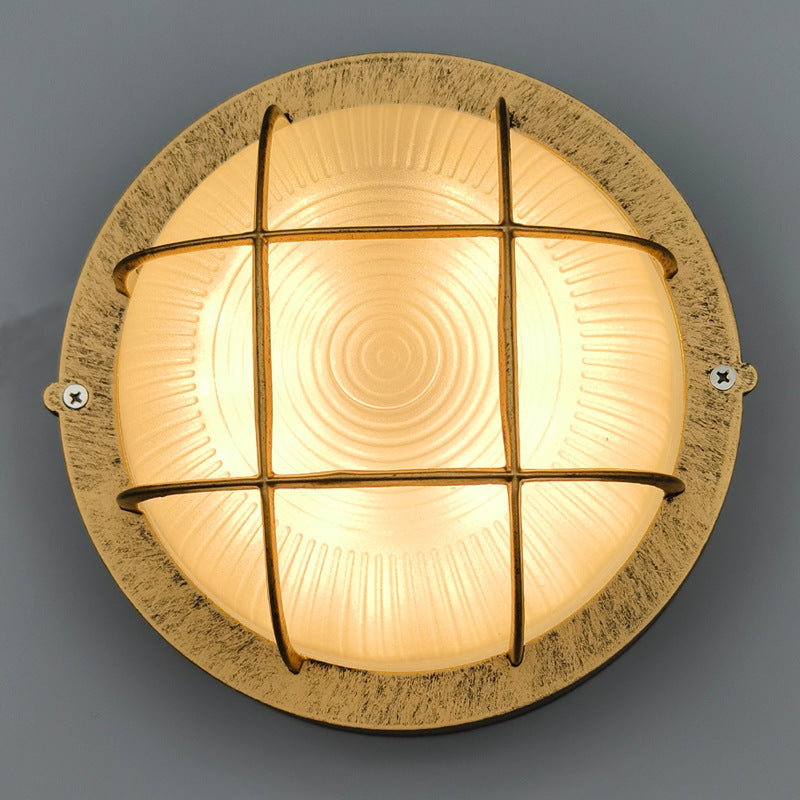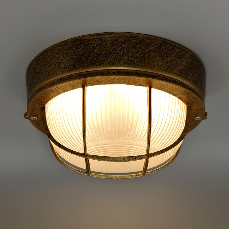 Contemporary Industrial Round Aluminum Frame Striped Glass Shade 1-Light Flush Mount Ceiling Light For Hallway