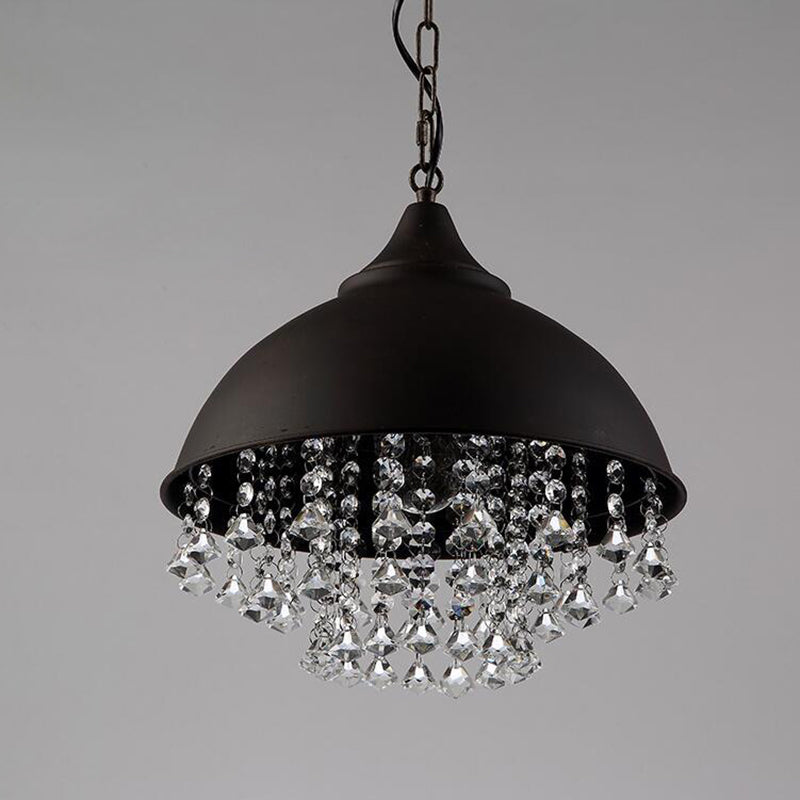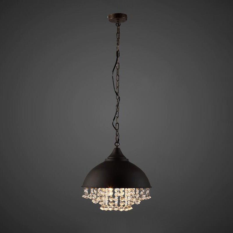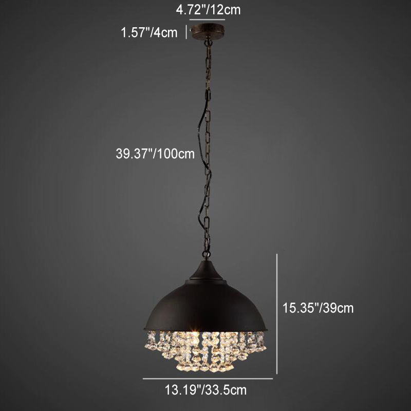 Contemporary Industrial Round Dome Crystal Iron 1-Light Pendant Light For Living Room