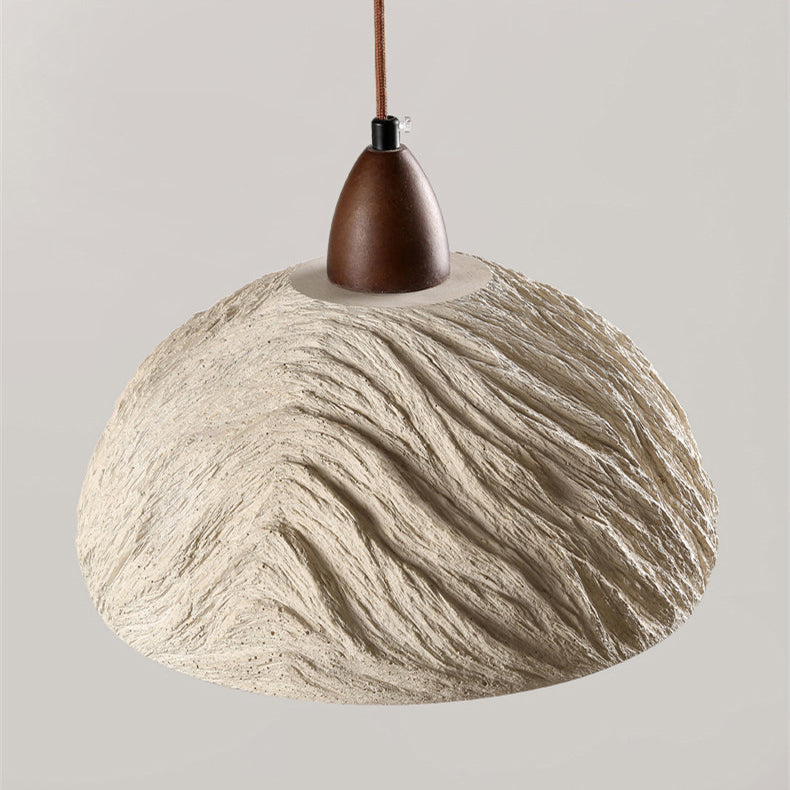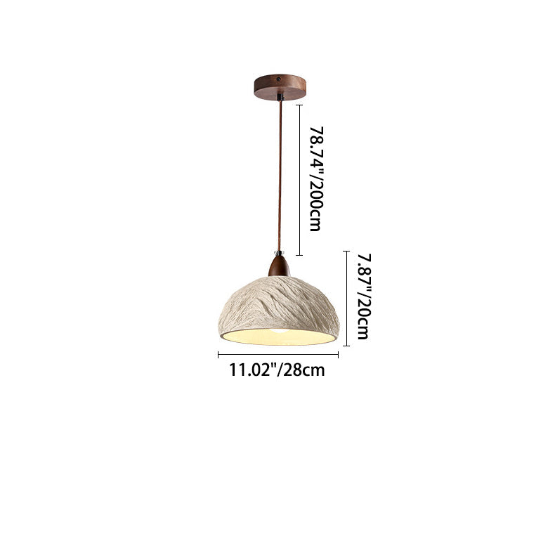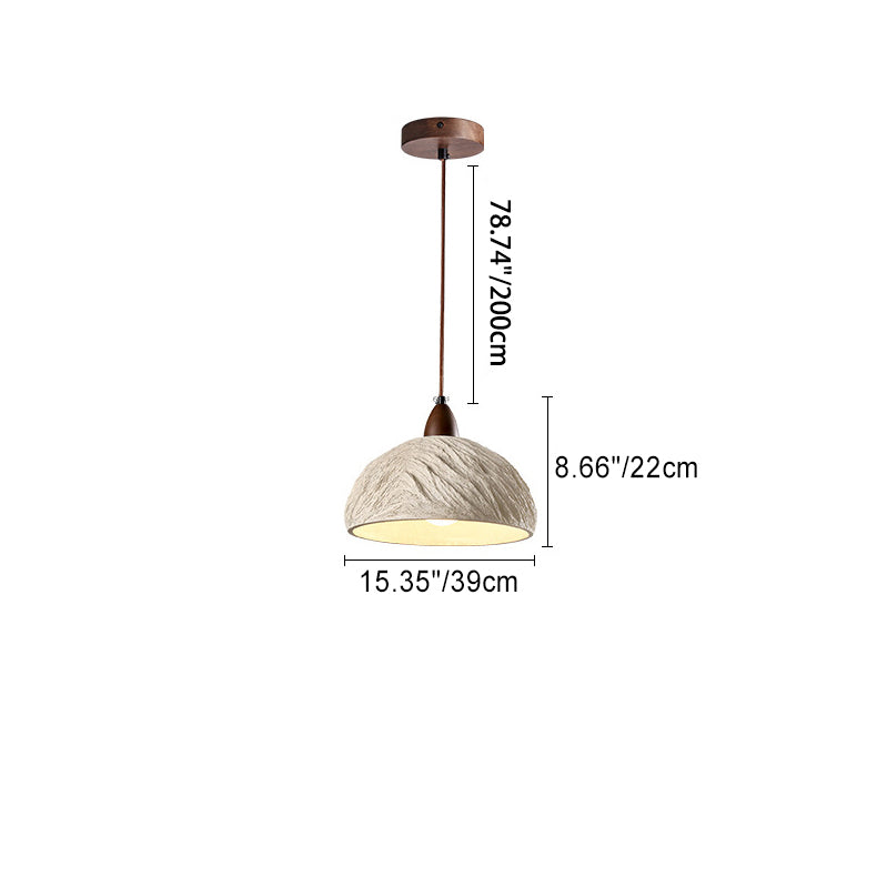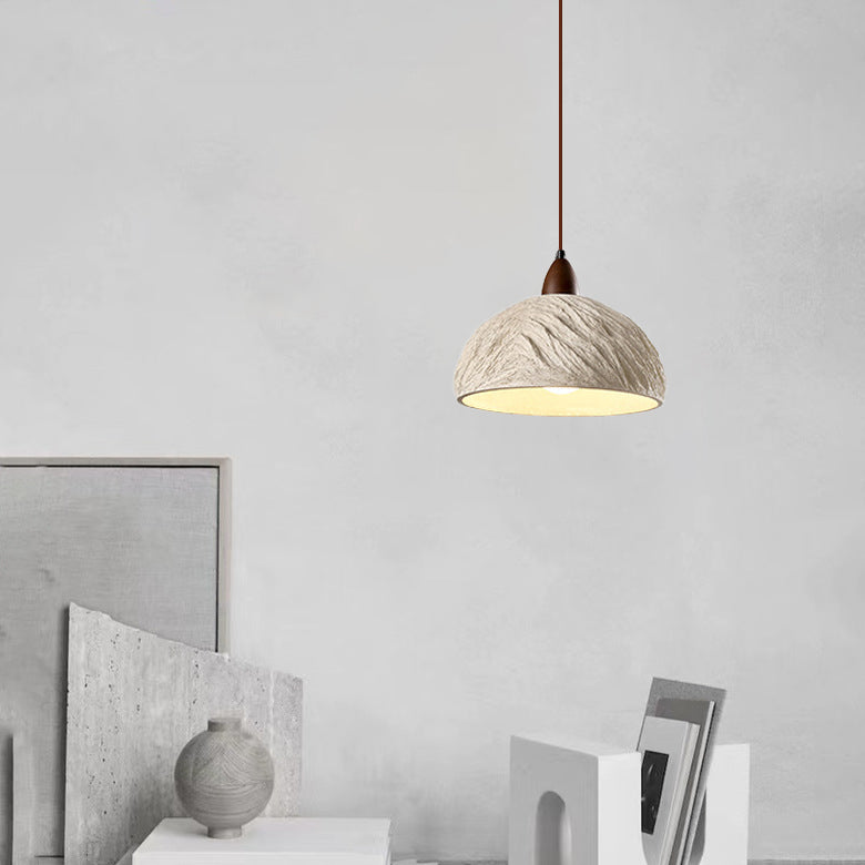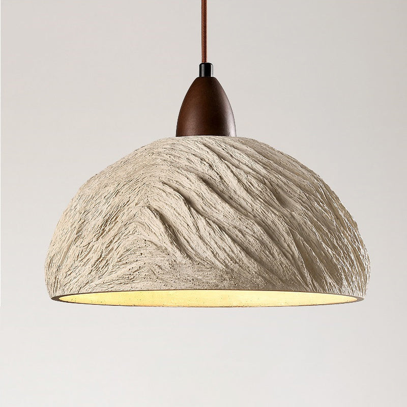 Contemporary Industrial Round Dome Solid Wood Cement 1-Light Pendant Light For Living Room