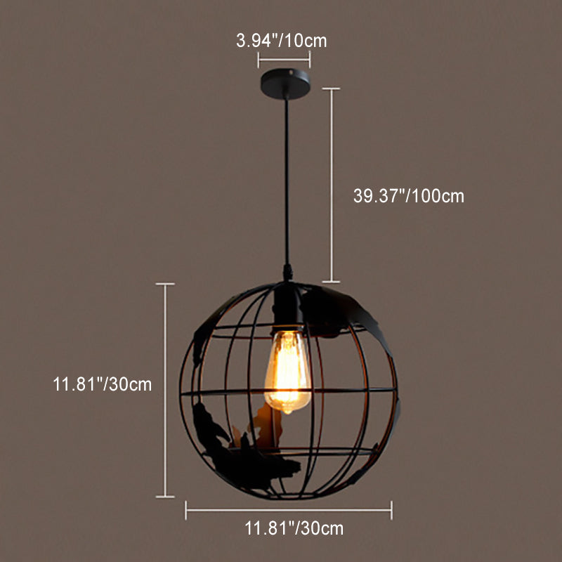 Contemporary Industrial Round Globe Iron Mesh Shade 1-Light Pendant Light For Living Room