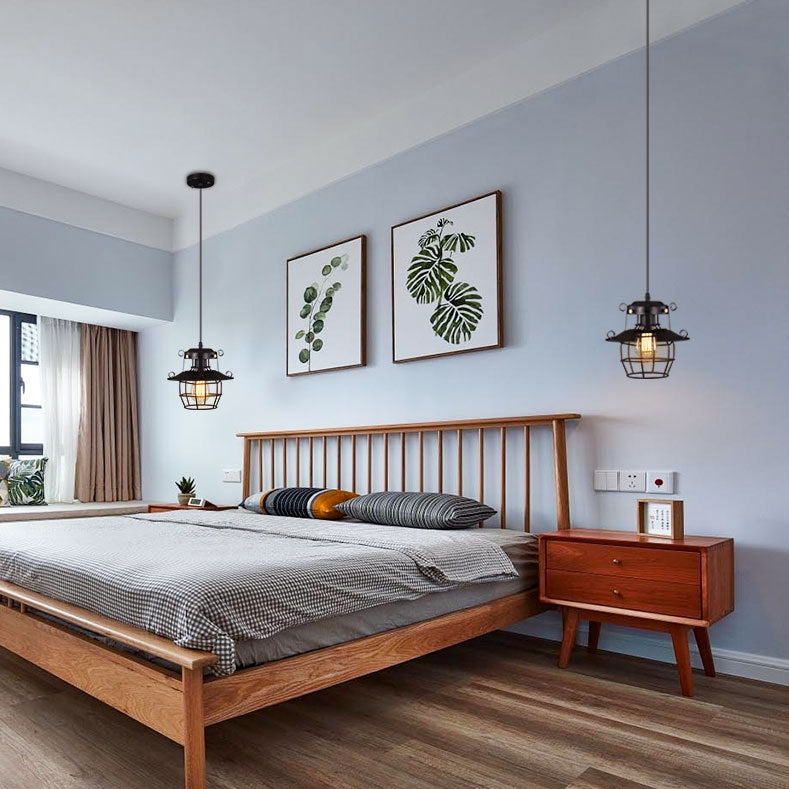 Contemporary Industrial Round Iron Cage Frame 1-Light Pendant Light For Living Room