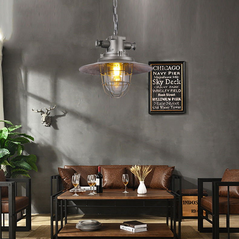 Contemporary Industrial Round Iron Cage Glass 1-Light Pendant Light For Living Room