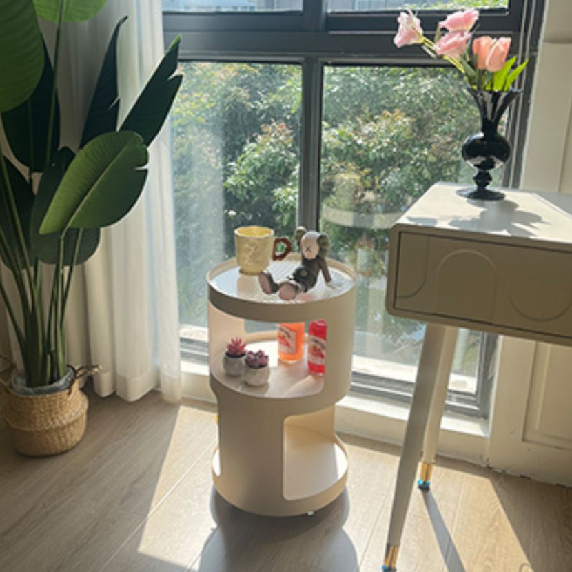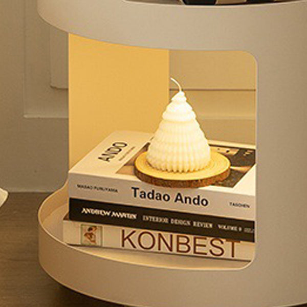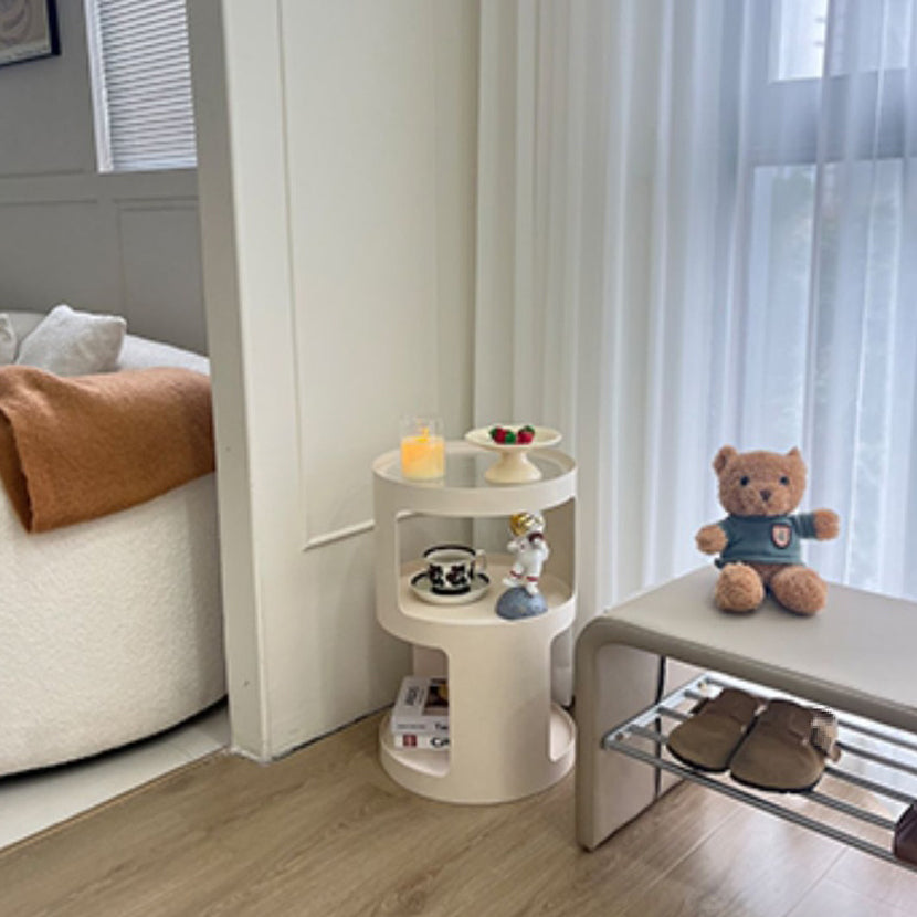 Contemporary Industrial Round Iron Glass Nightstand 2-Tier For Bedroom
