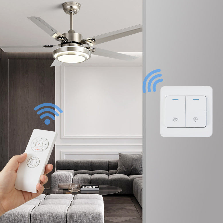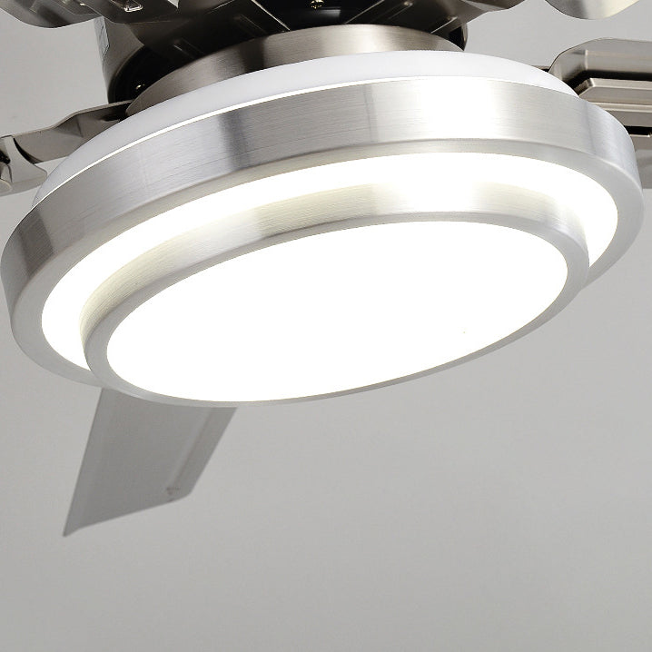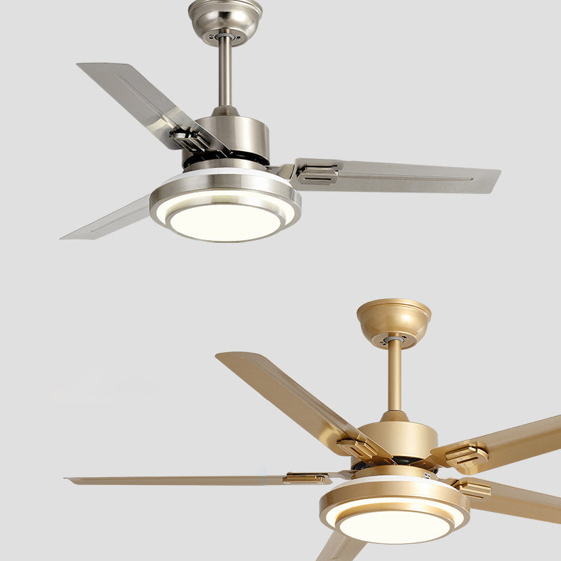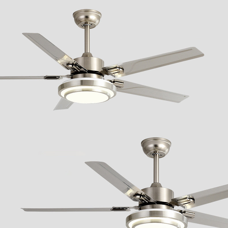Contemporary Industrial Round Rectangular Fan Blade Iron LED Downrods Ceiling Fan Light For Living Room