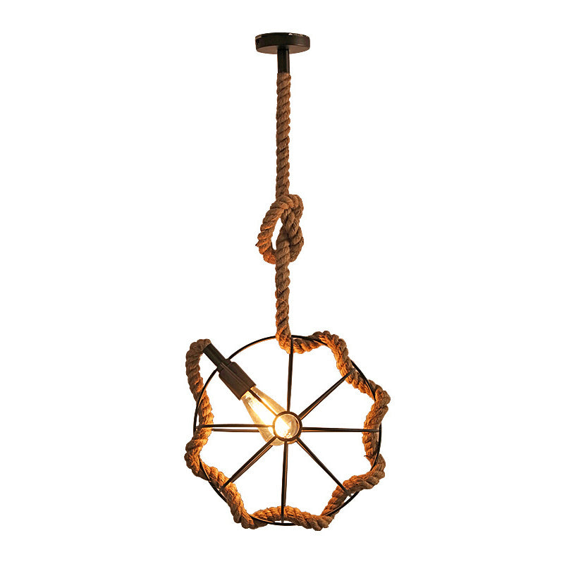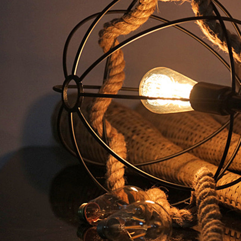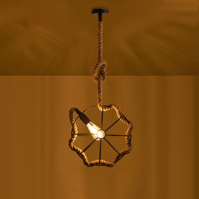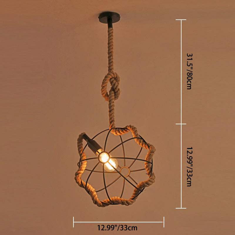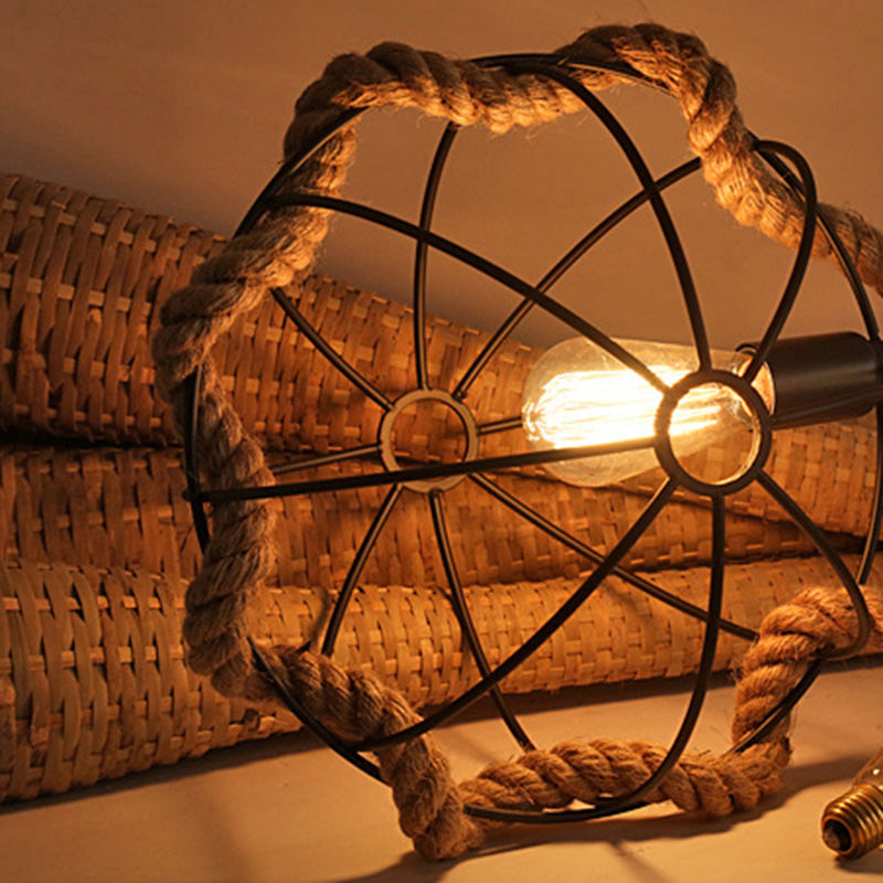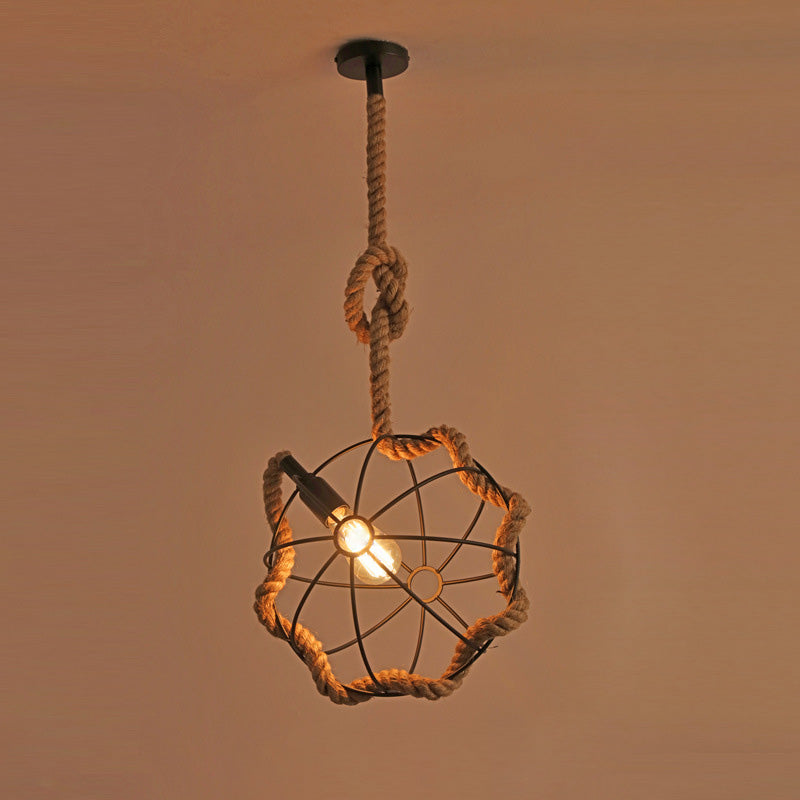 Contemporary Industrial Round Sphere Sisal Iron 1-Light Pendant Light For Bedroom