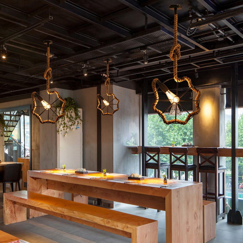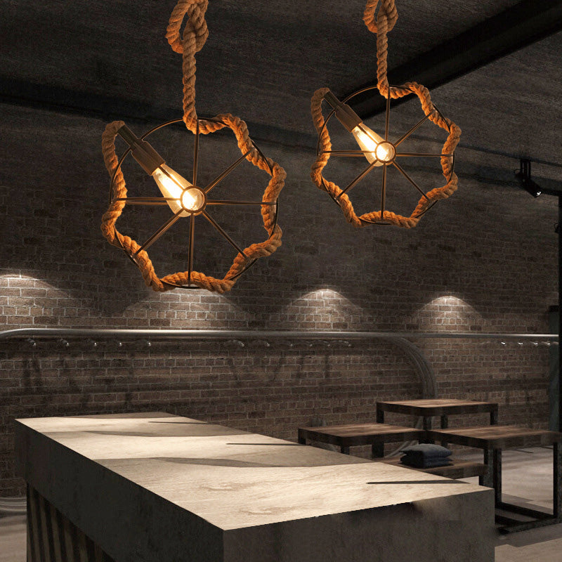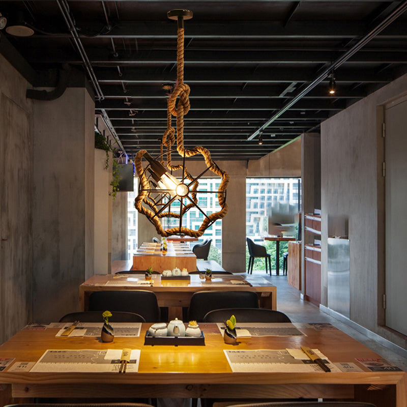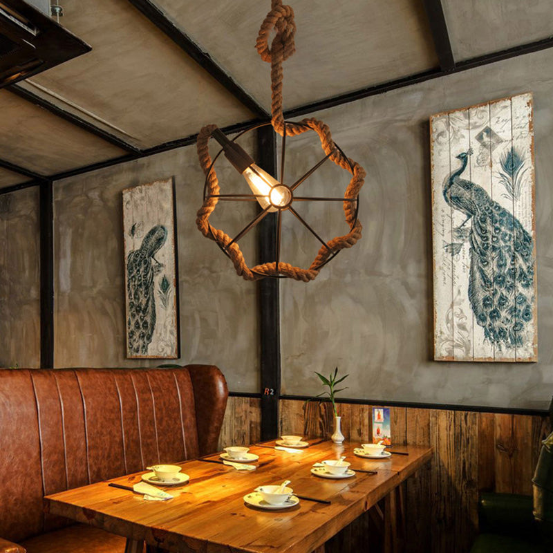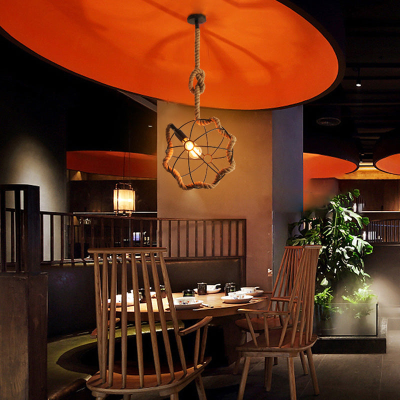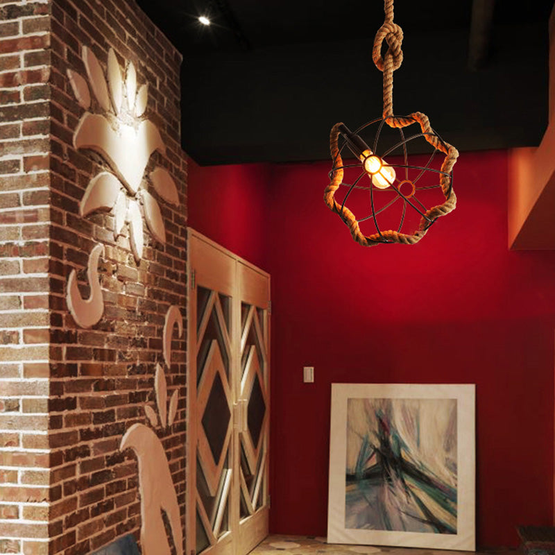Contemporary Industrial Round Sphere Sisal Iron 1-Light Pendant Light For Bedroom