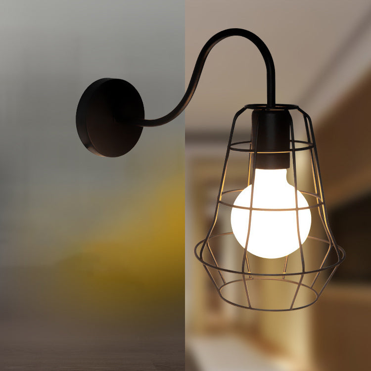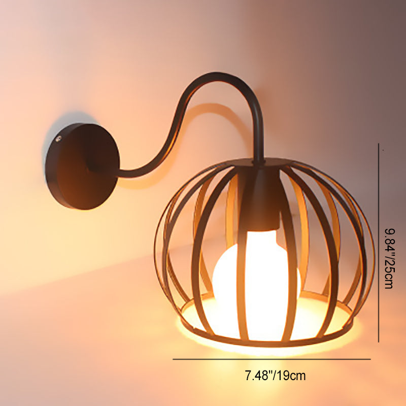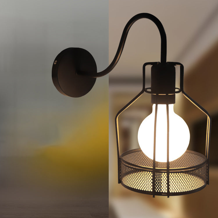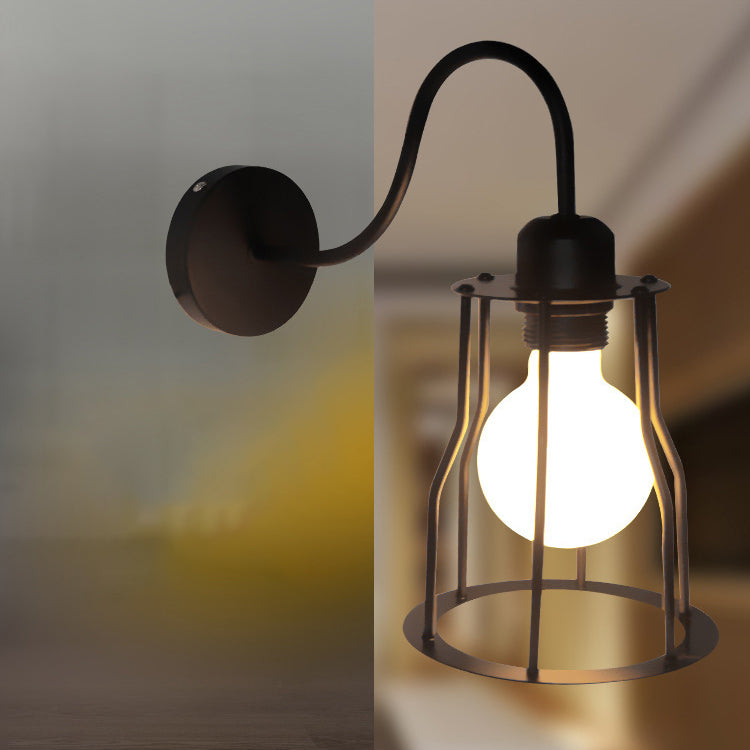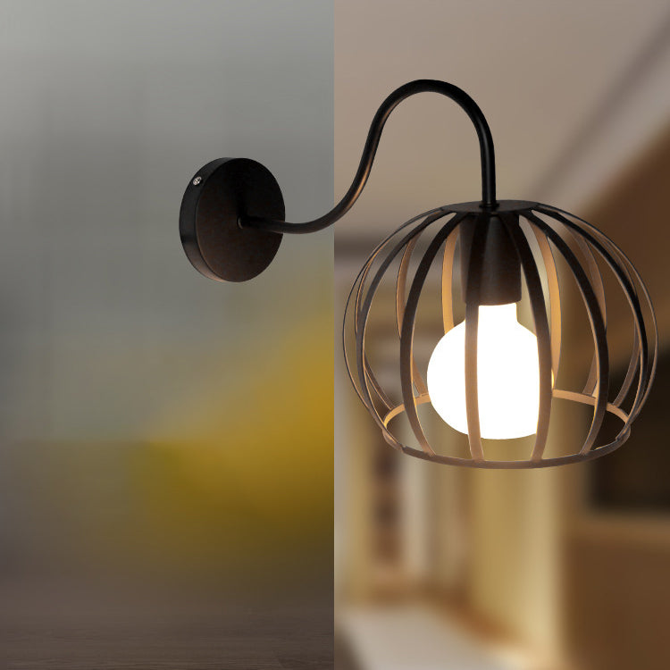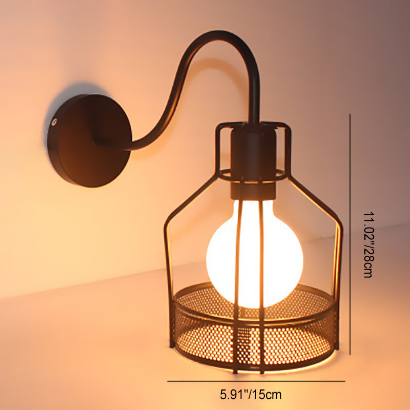 Contemporary Industrial Skeleton Round Square Iron 1-Light Wall Sconce Lamp For Living Room