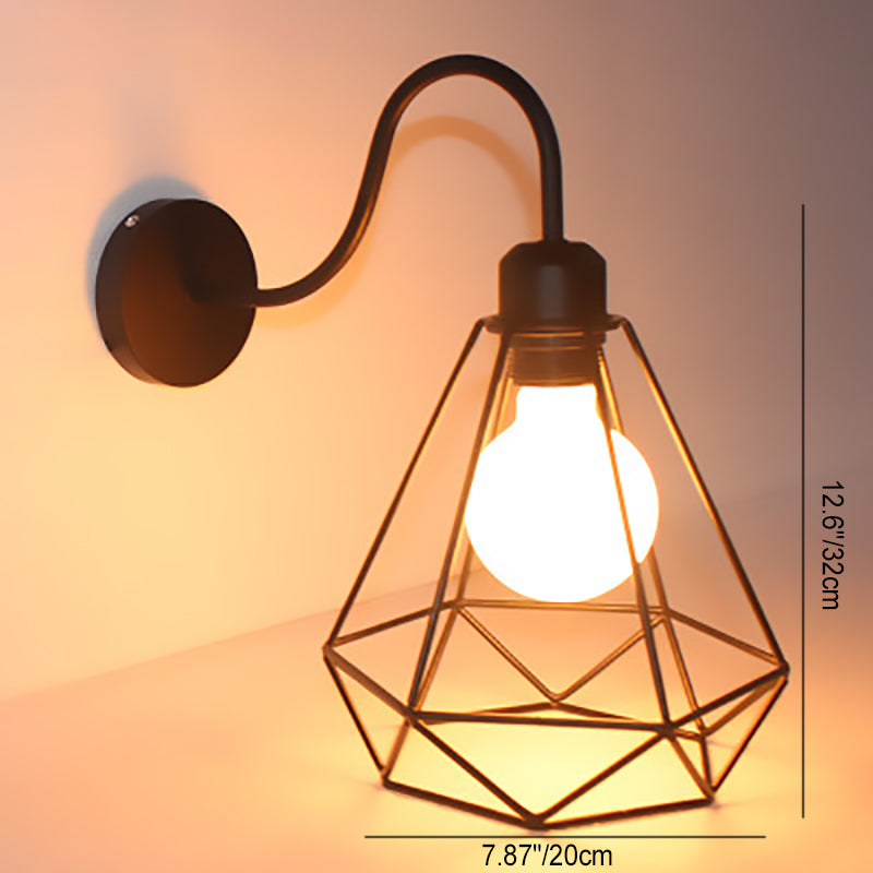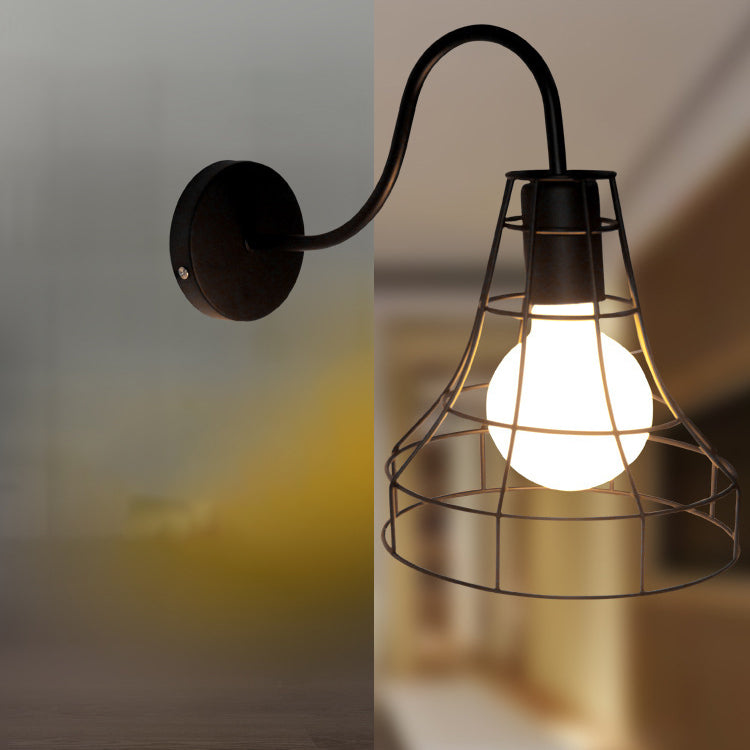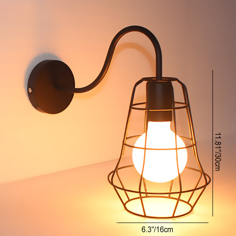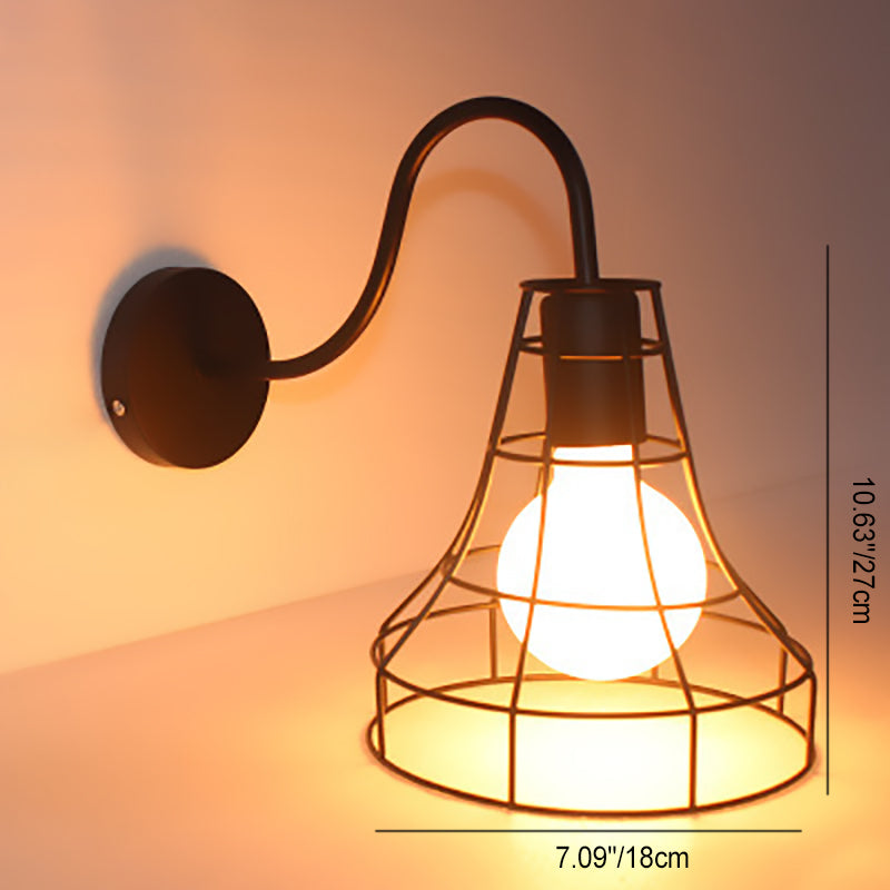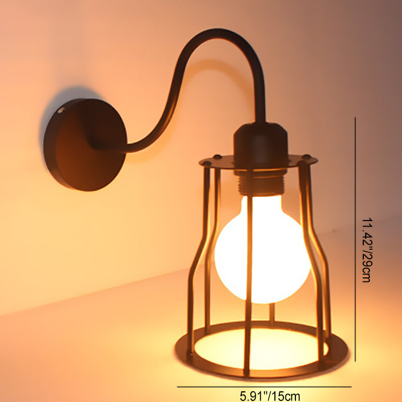 Contemporary Industrial Skeleton Round Square Iron 1-Light Wall Sconce Lamp For Living Room