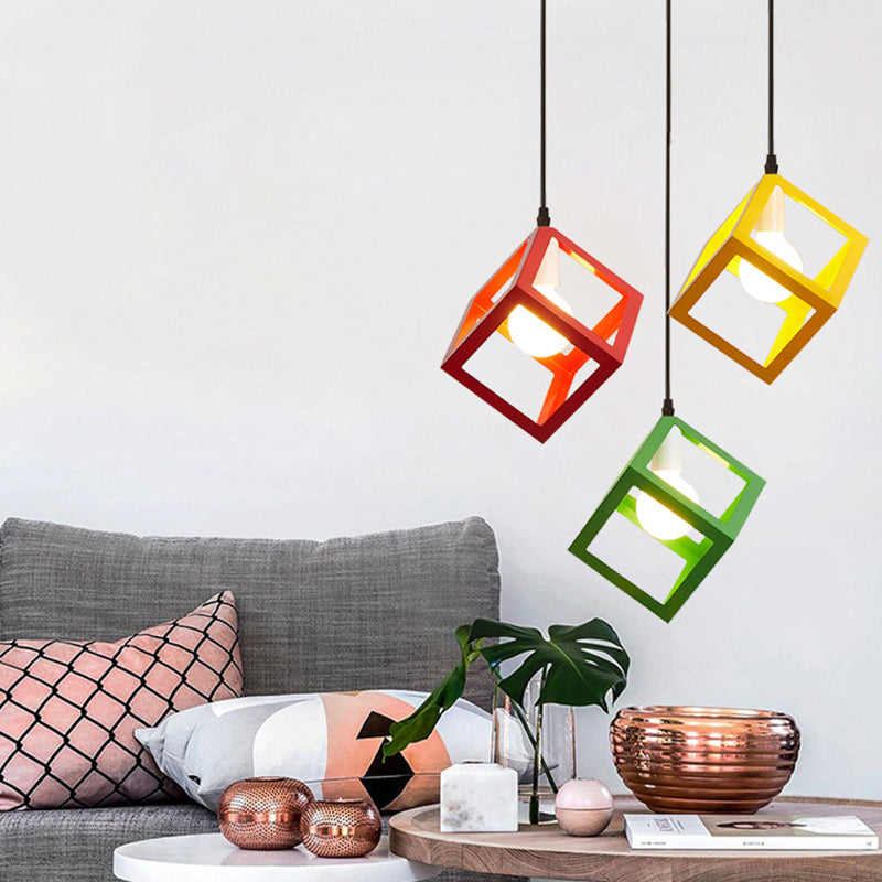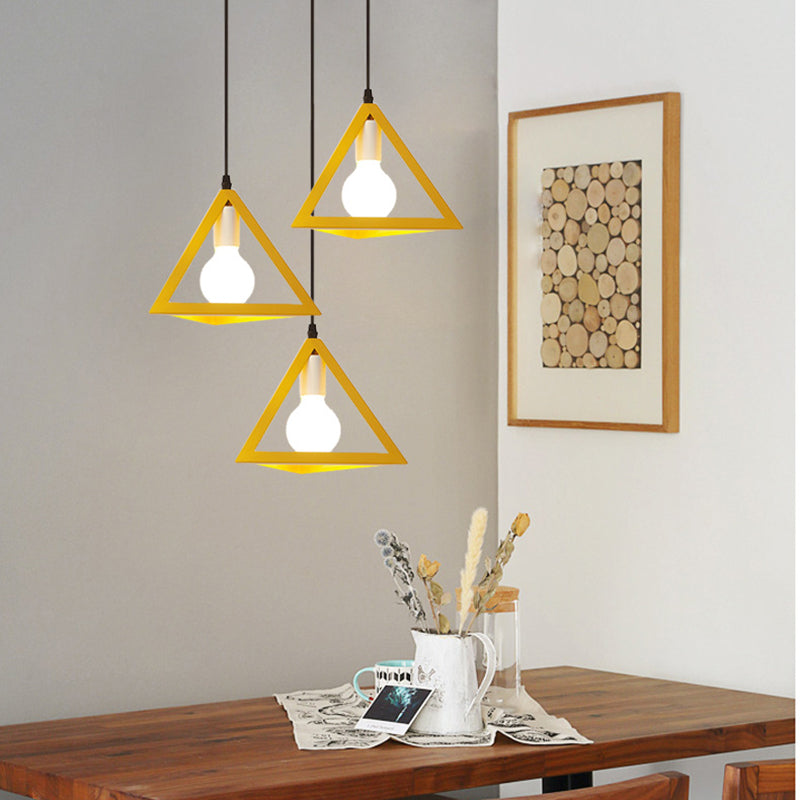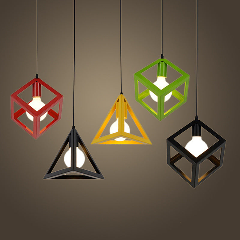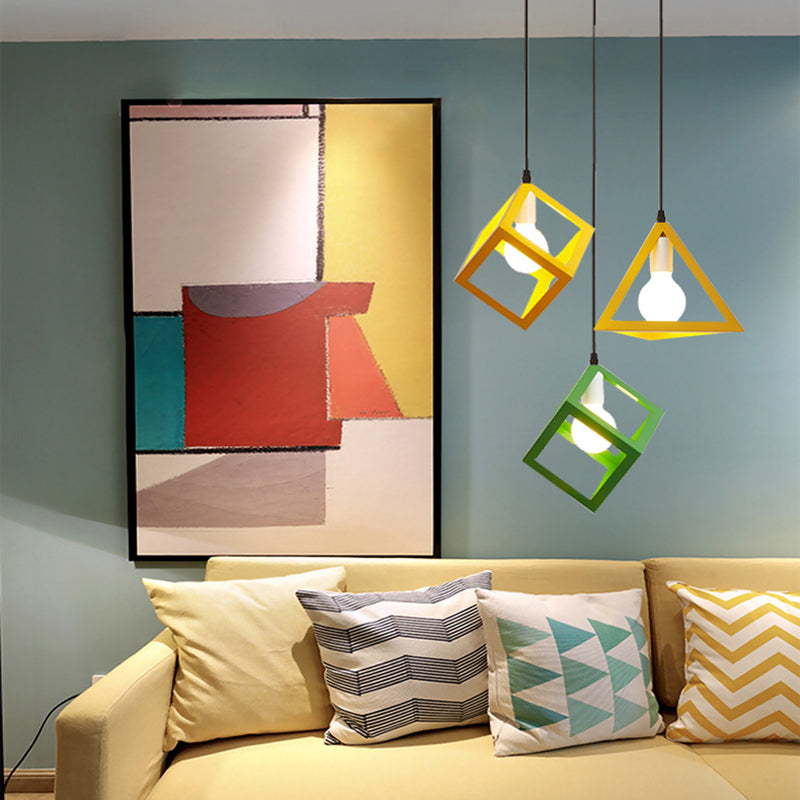 Contemporary Industrial Square Triangle Skeleton Iron 1-Light Pendant Light For Living Room