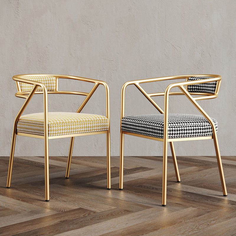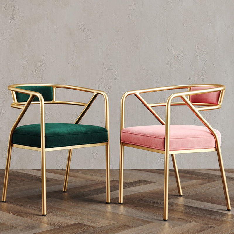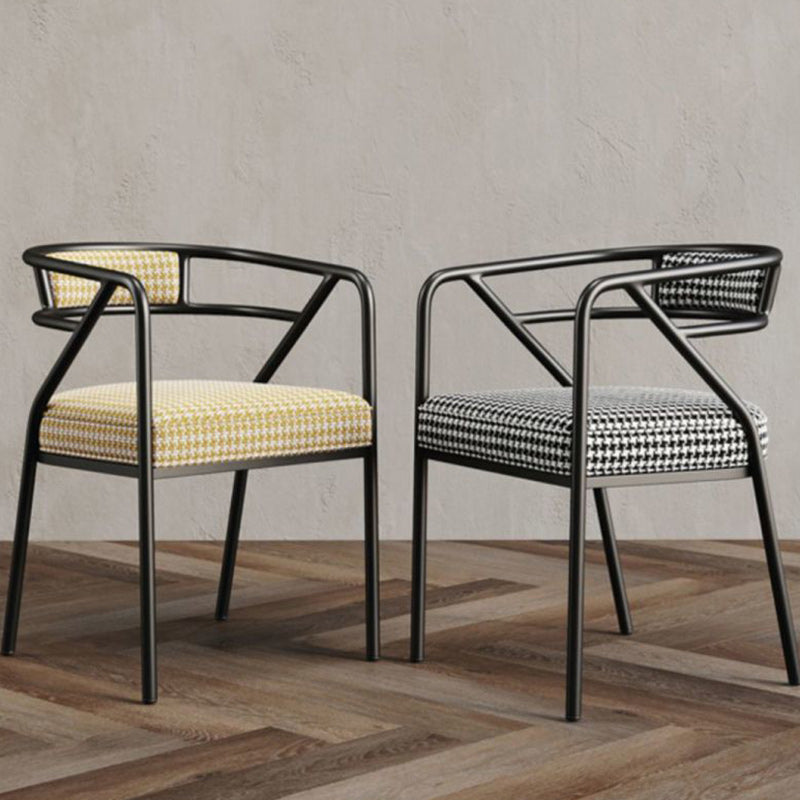 Contemporary Industrial Square Upholstered Suede Fabric PU Leather Iron Dining Chair Curved Backrest Armrest for Dining Room