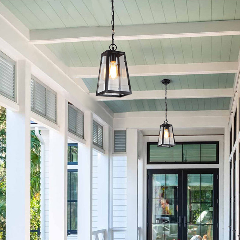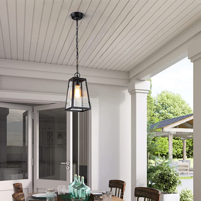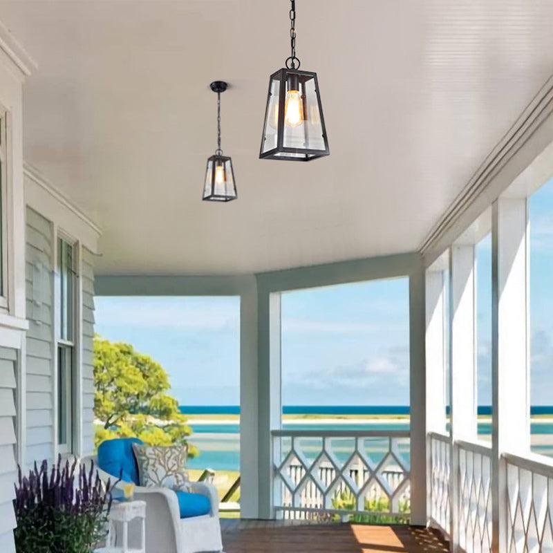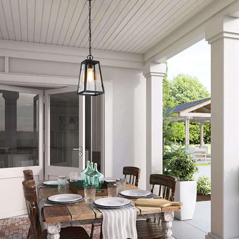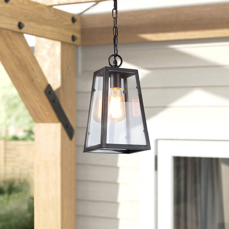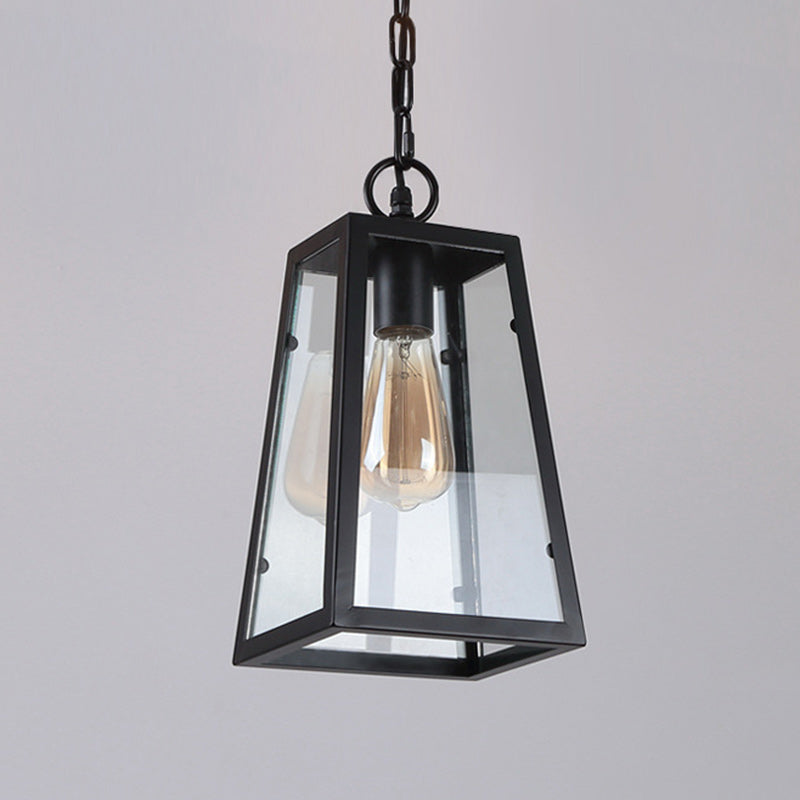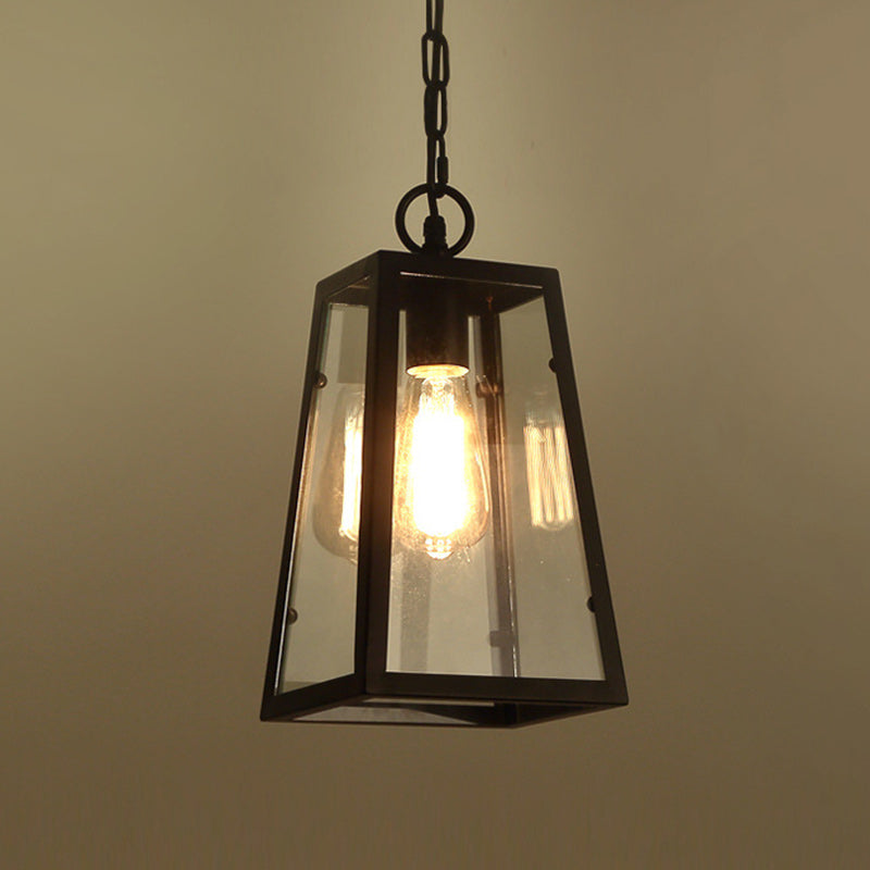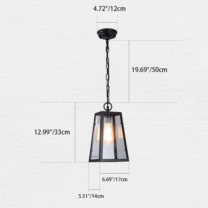 Contemporary Industrial Trapezoidal Prismatic Rectangular Striped Iron Glass 1-Light Pendant Light For Living Room