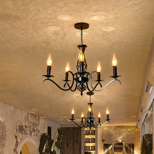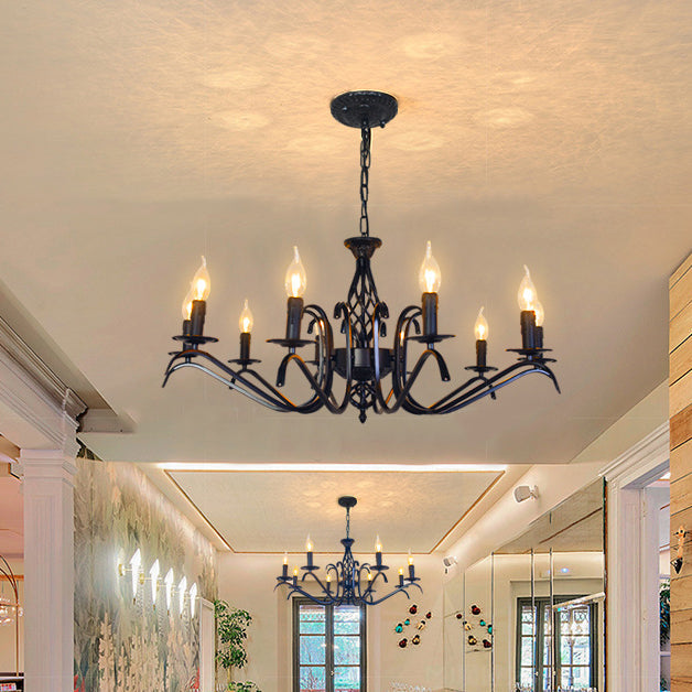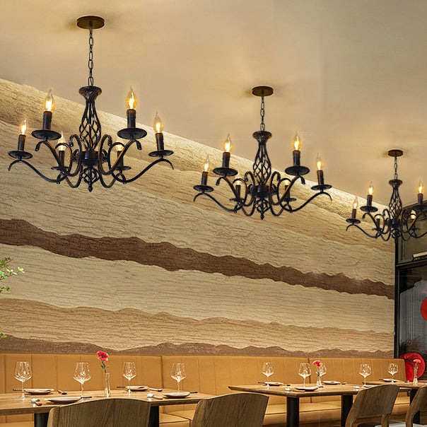 Contemporary Industrial Twig Candle Shaped Iron 3/5/6/8/10 Light Chandelier For Living Room