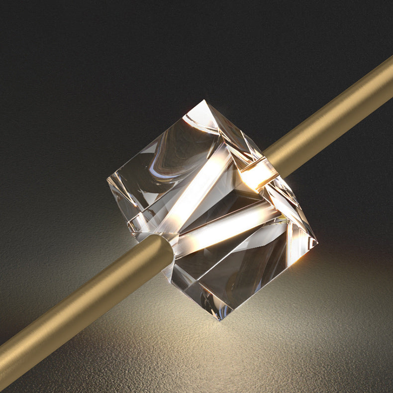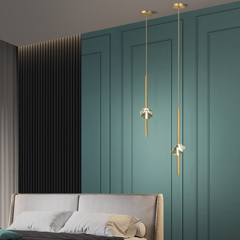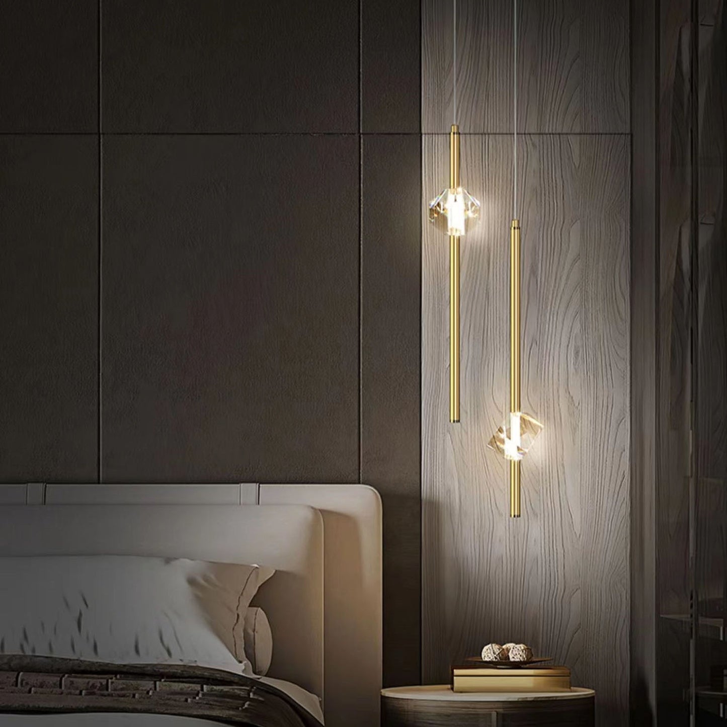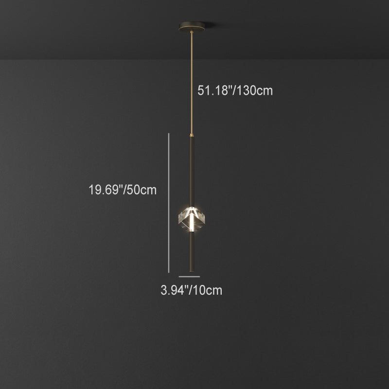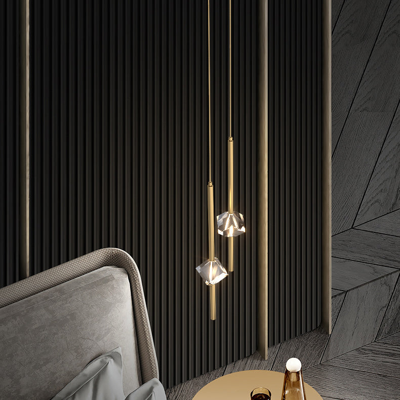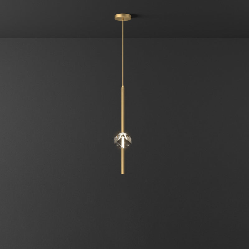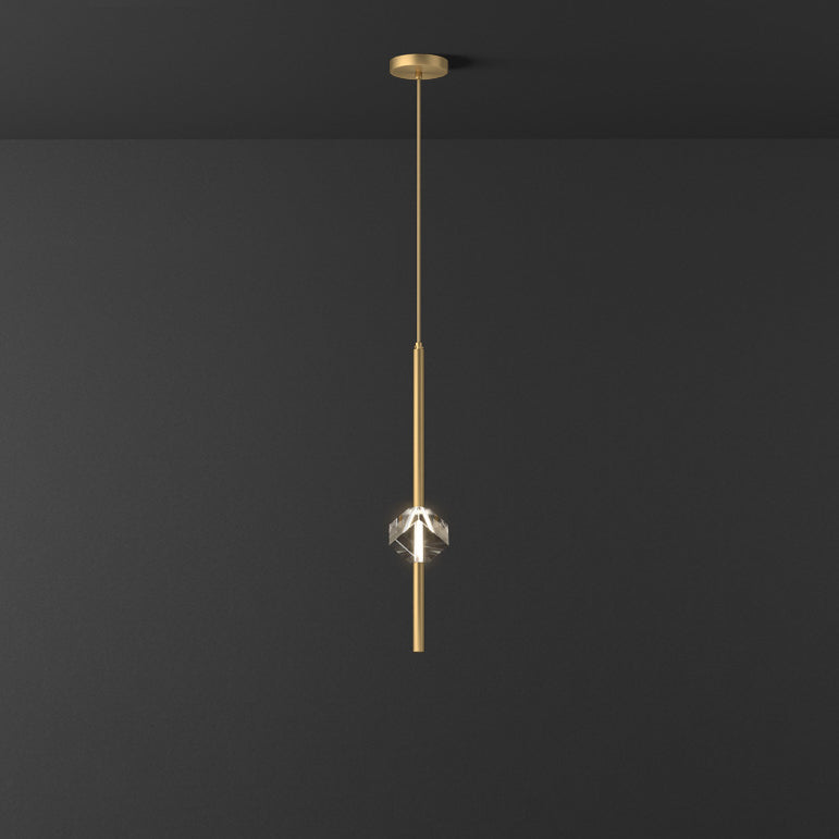 Contemporary Luxury Brass Strip Dazzling Crystal Stone LED Pendant Light For Living Room