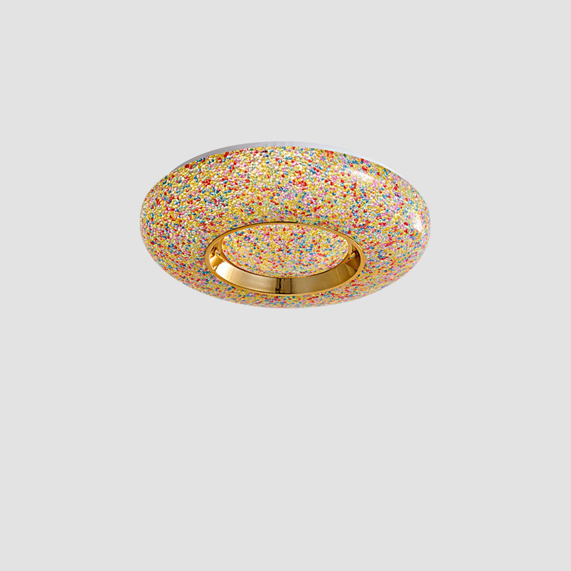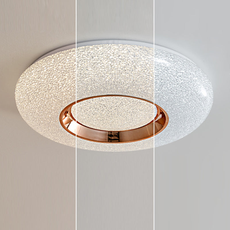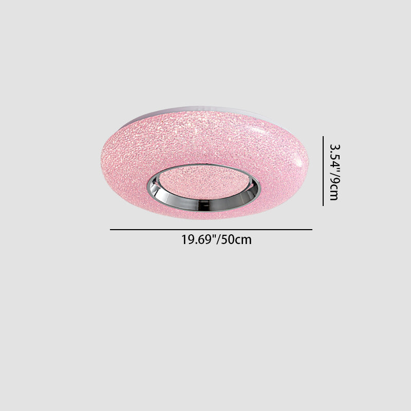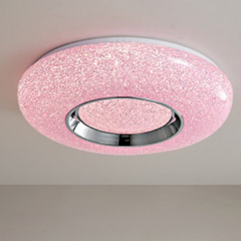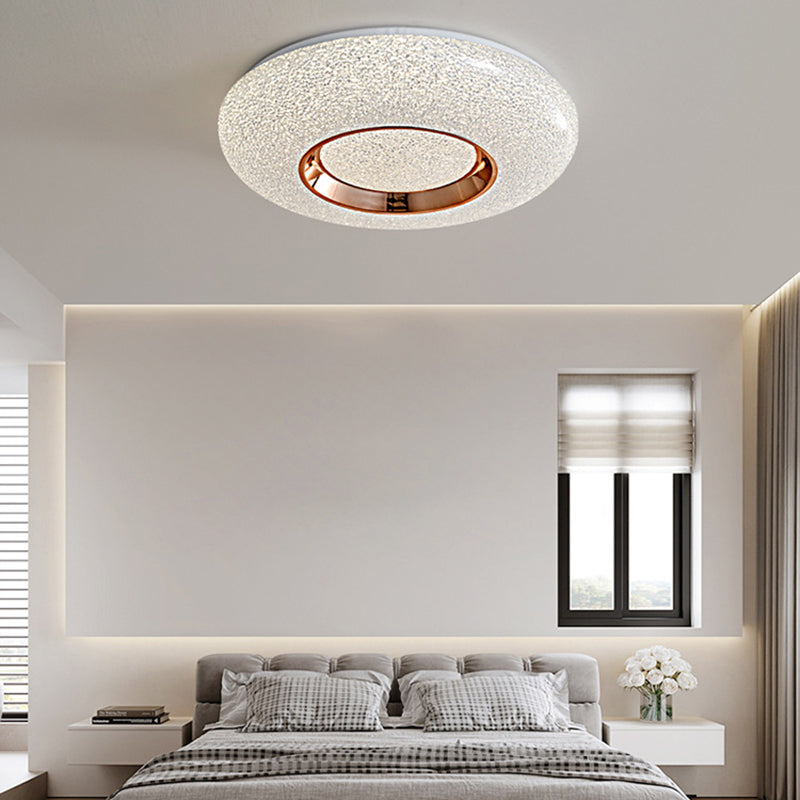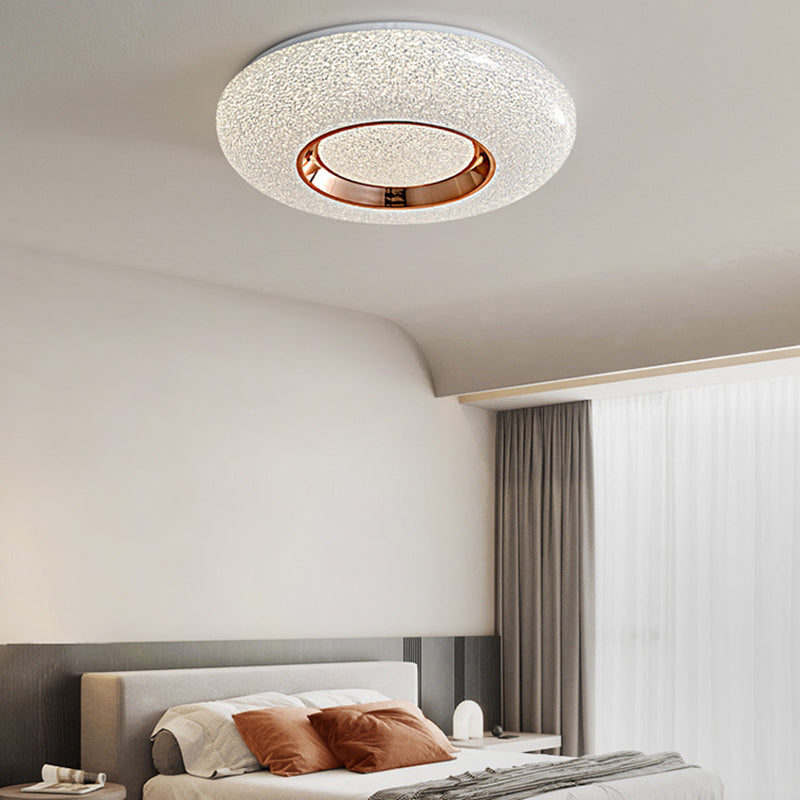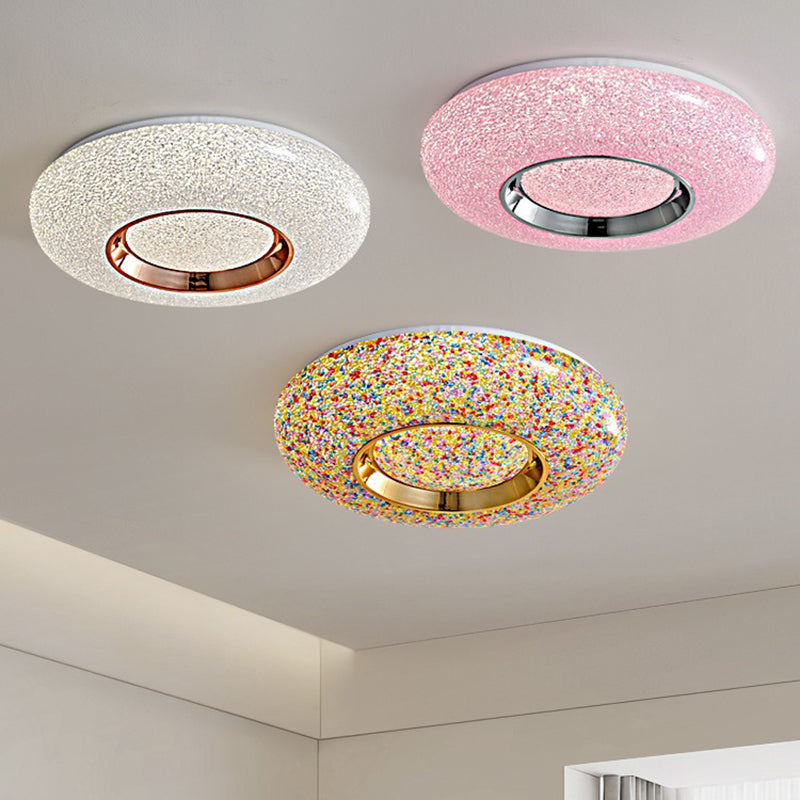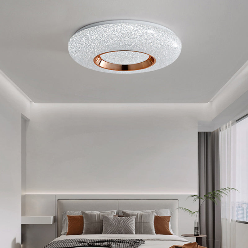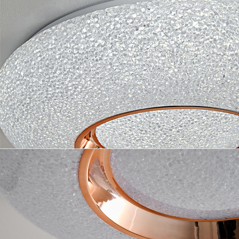 Contemporary Luxury Dazzling Crystal Sand Acrylic Geometric Ring LED Flush Mount Ceiling Light For Bedroom
