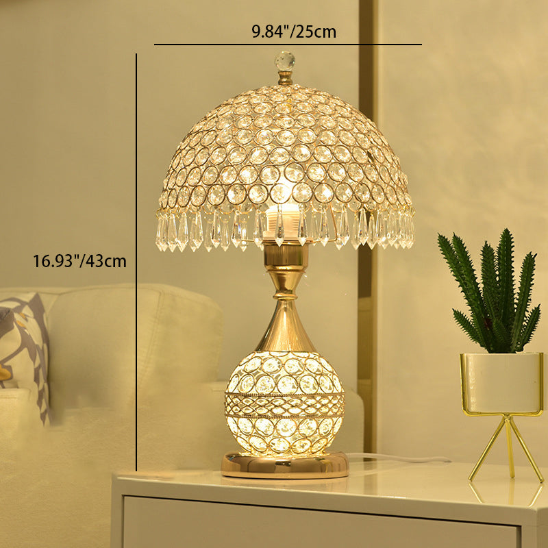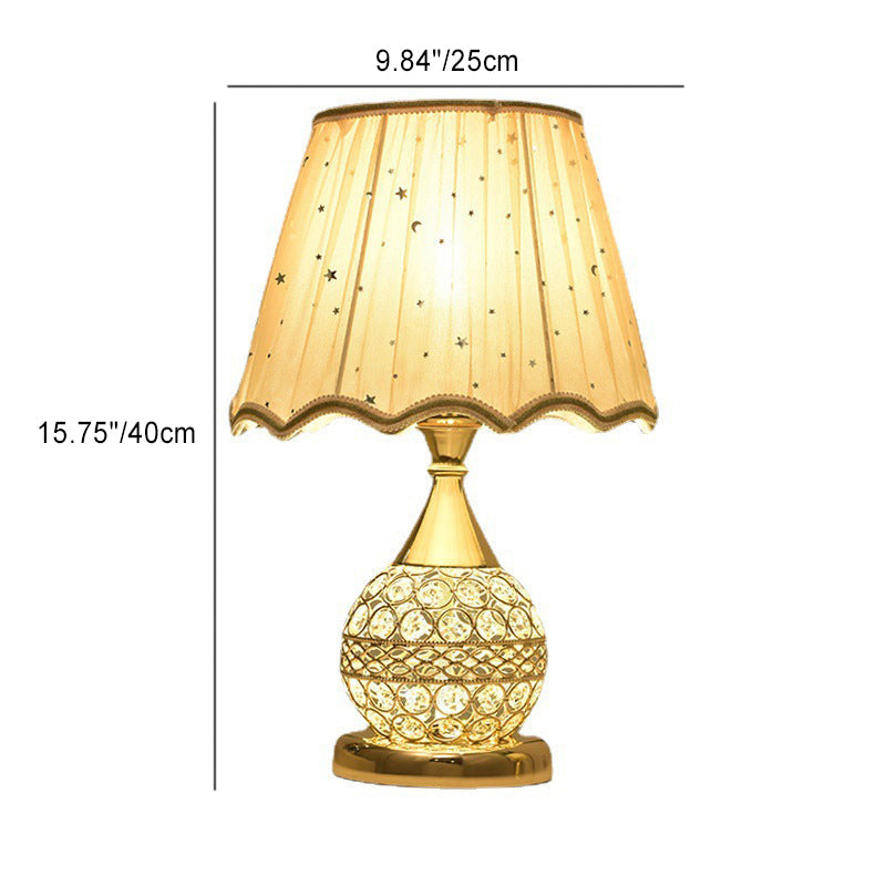 Contemporary Luxury Fabric Shade Crystal Ball Iron Base 1-Light Table Lamp For Home Office