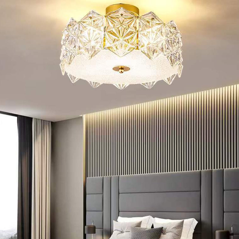 Contemporary Luxury Glass Aluminum Iron Round Frosted Snowflake 5/6/8 Light Semi-Flush Mount Ceiling Light For Bedroom