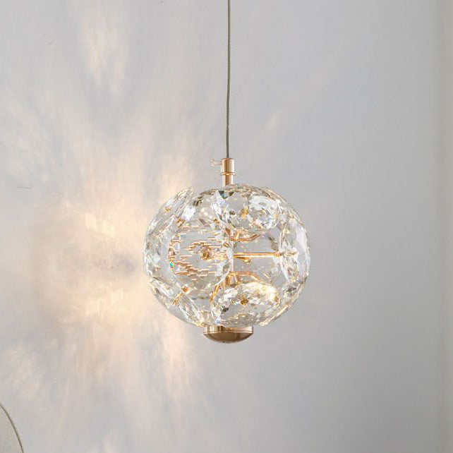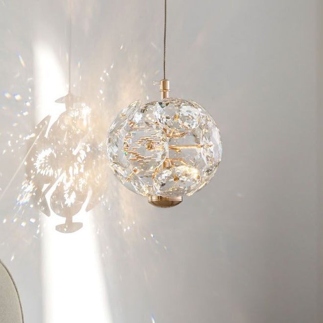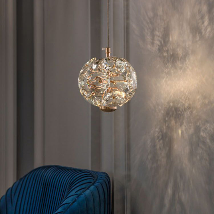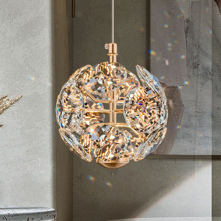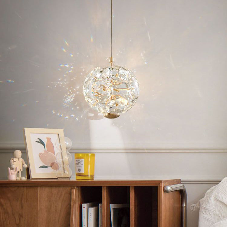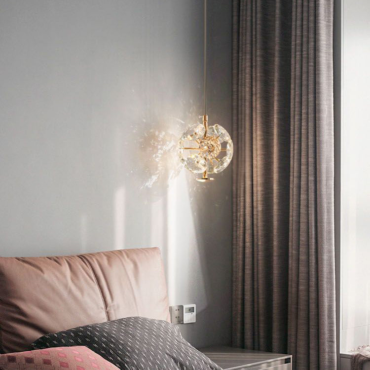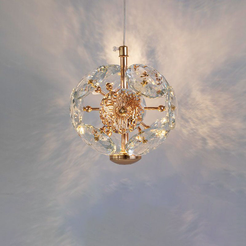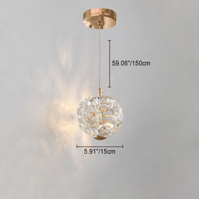 Contemporary Luxury Globe Steel Crystal LED Pendant Light For Living Room