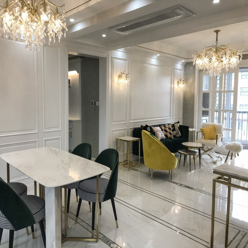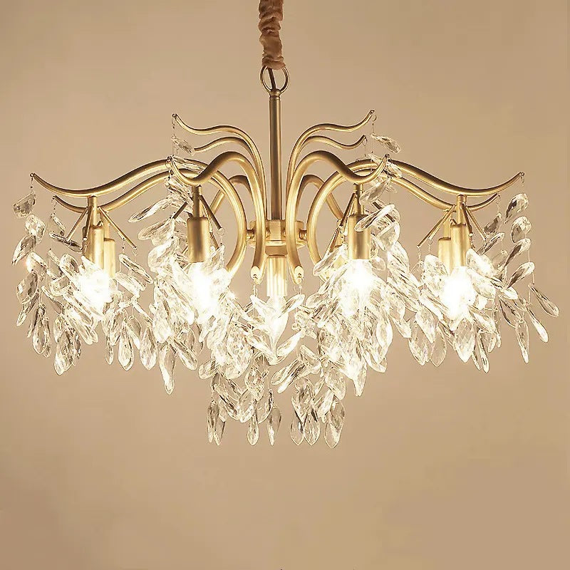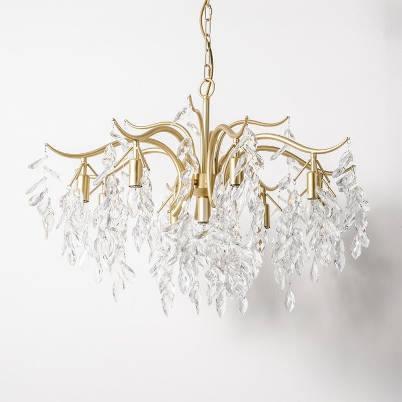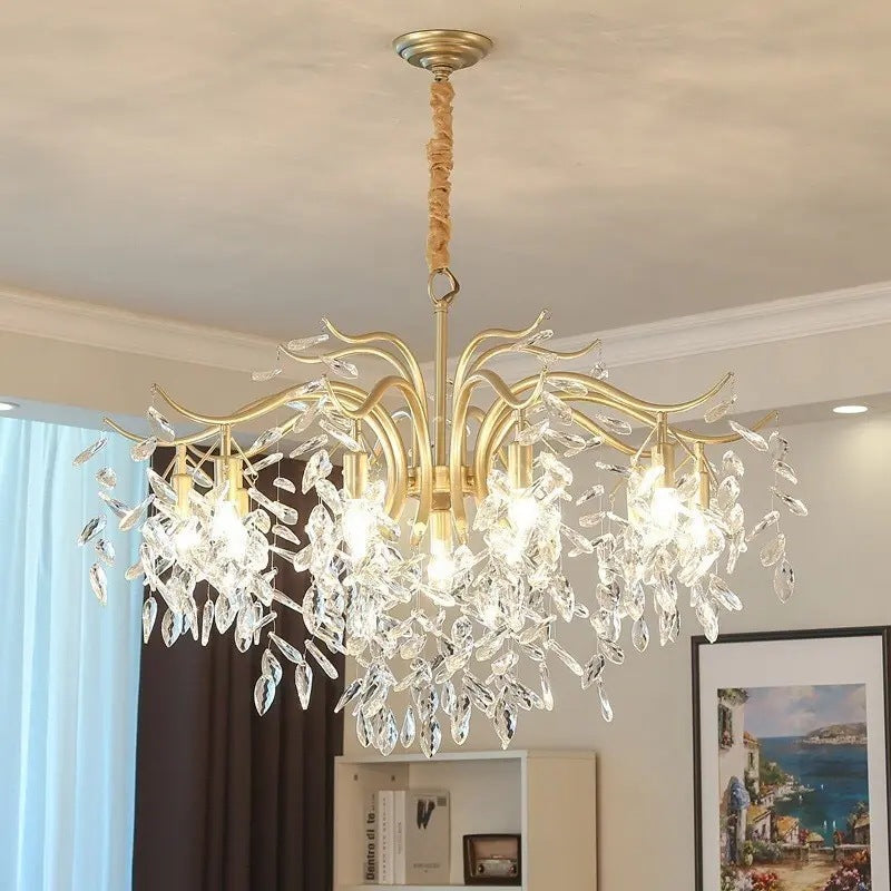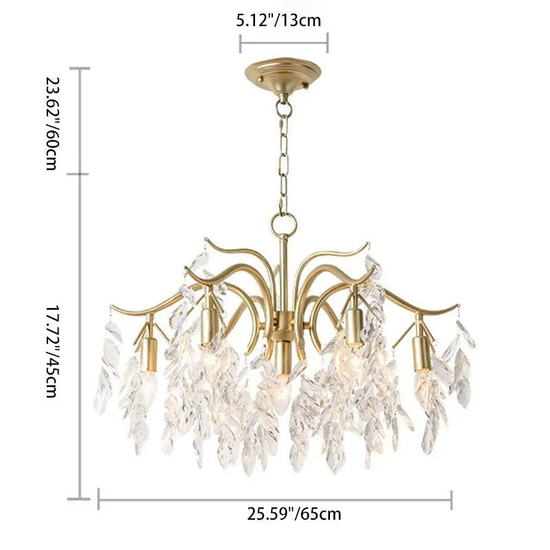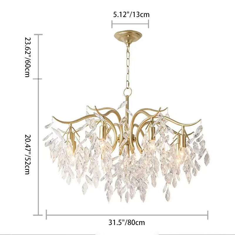 Add a sculptural statement to your space with this gold-tone contemporary luxury chandelier, featuring a graceful branch and leaf design crafted from iron and sparkling crystal. Available in 7, 9, or 11-light options, it delivers high visual impact—ideal for modern living rooms, bedrooms, or upscale interiors.