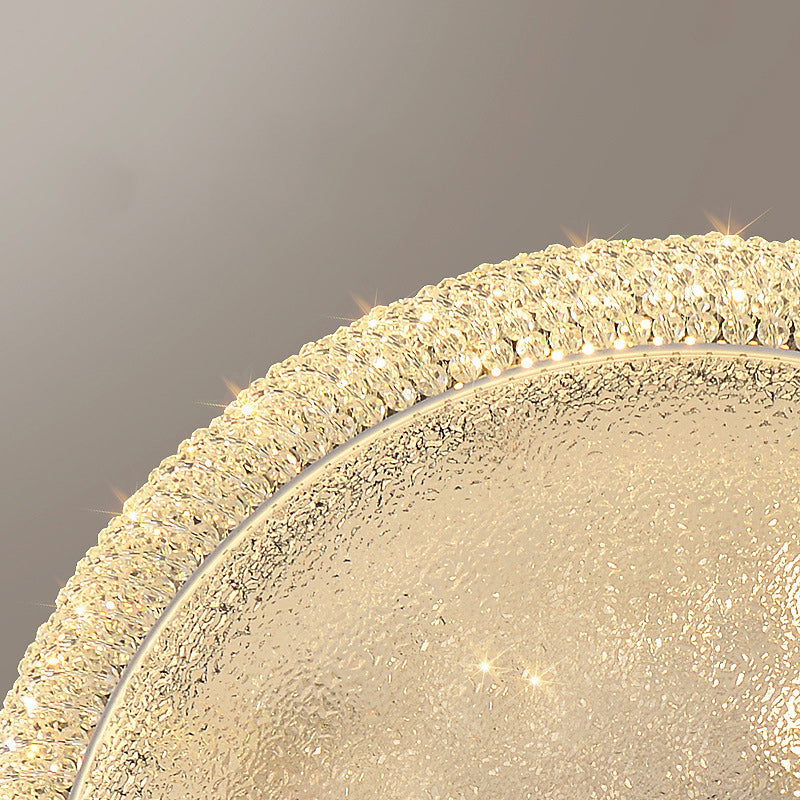 Contemporary Luxury Iron Crystal Round LED Flush Mount Ceiling Light For Bedroom
