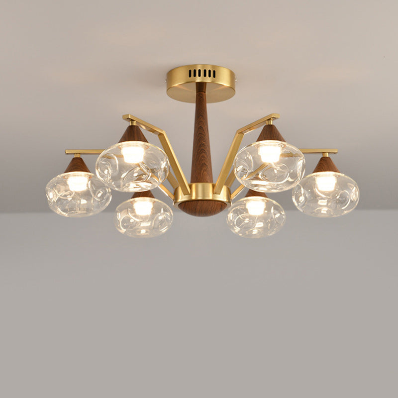 Contemporary Luxury Iron Frame Glass Round Shade LED Chandelier For Living Room