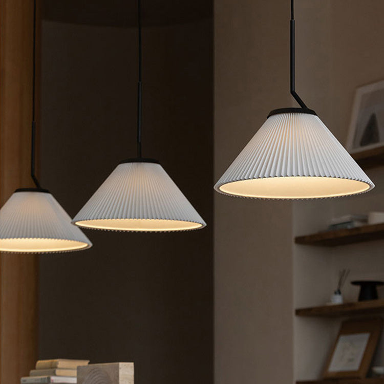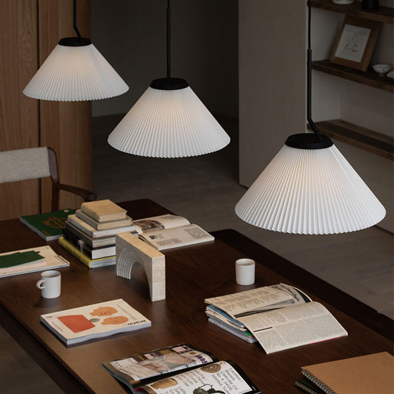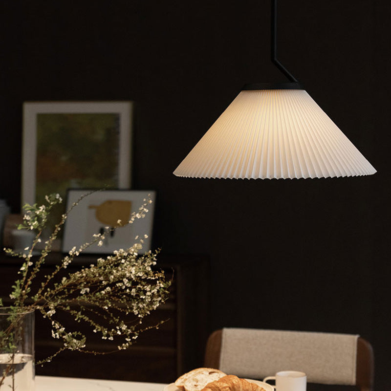 Contemporary Luxury Pleated Cone TC Cloth PVC 1-Light Pendant Light For Living Room