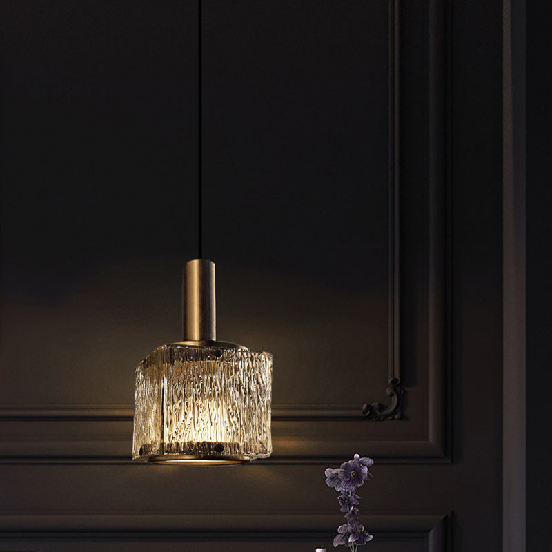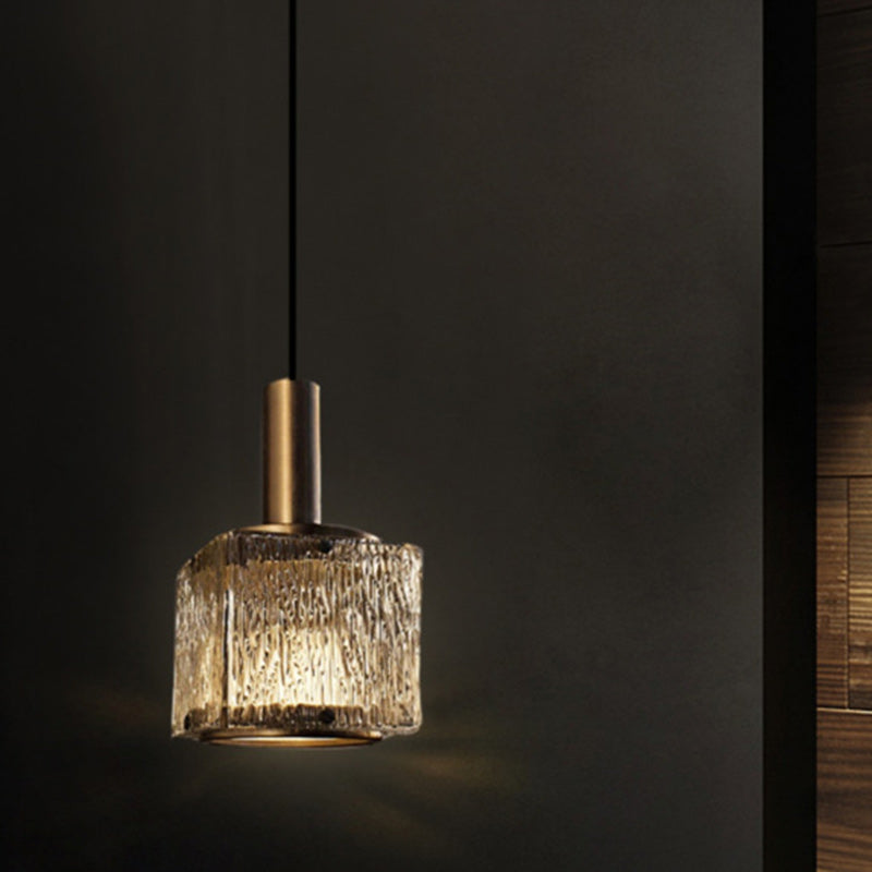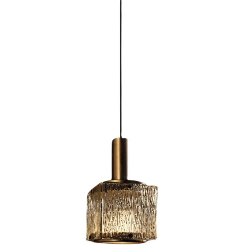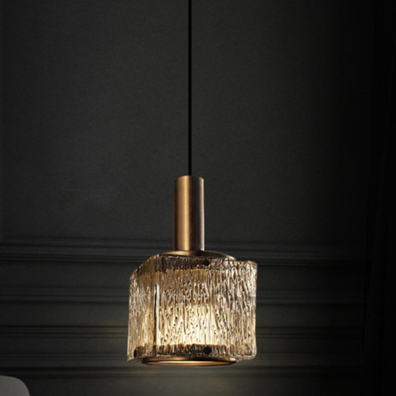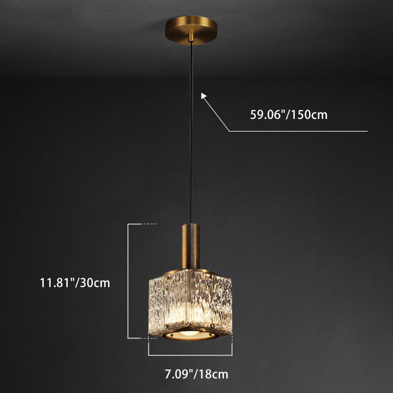 Contemporary Luxury Rectangular Copper Glass 1-Light Pendant Light For Living Room