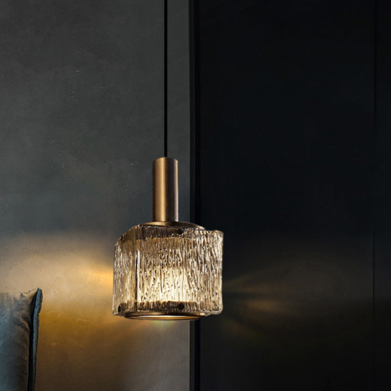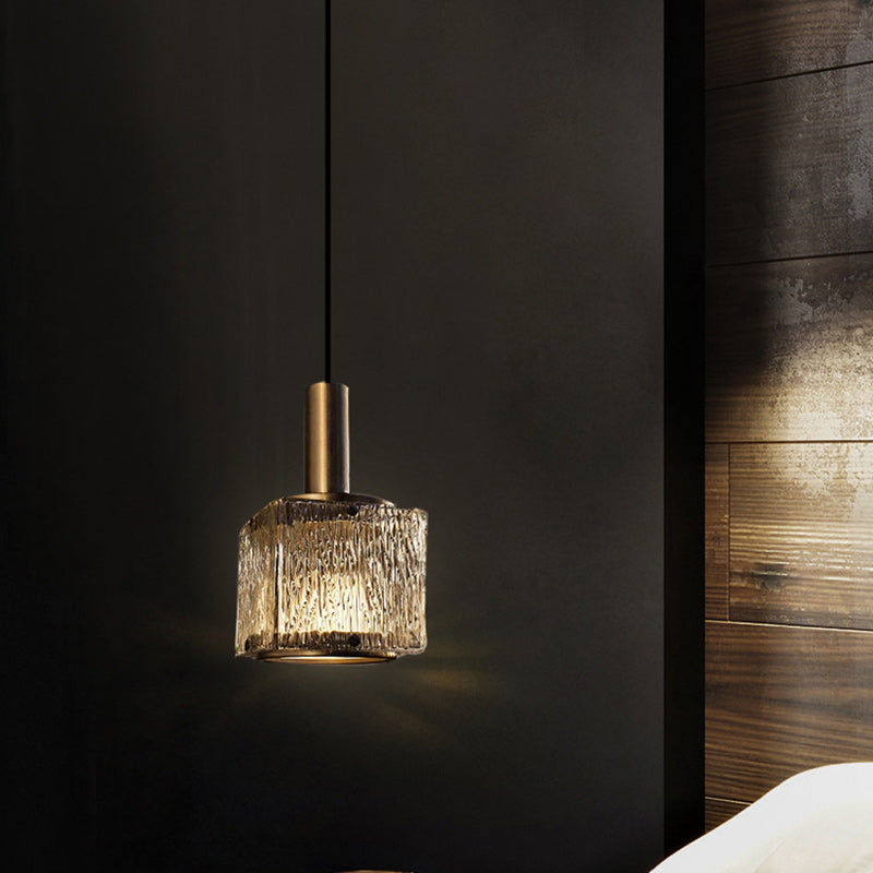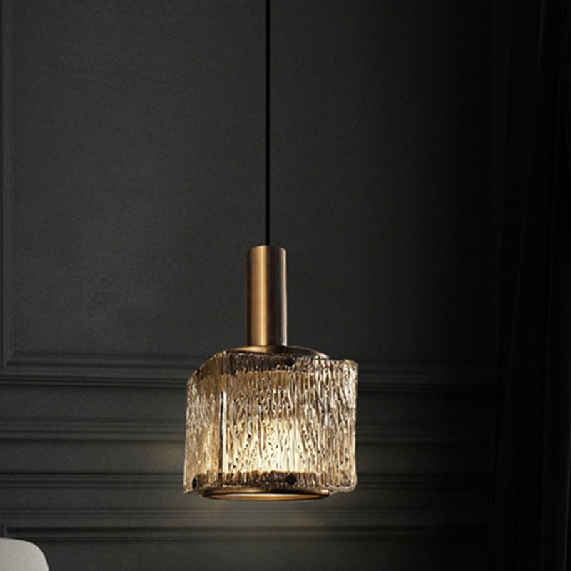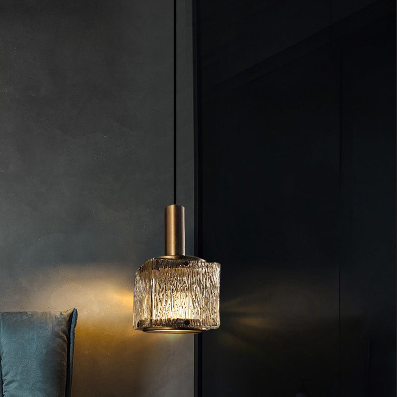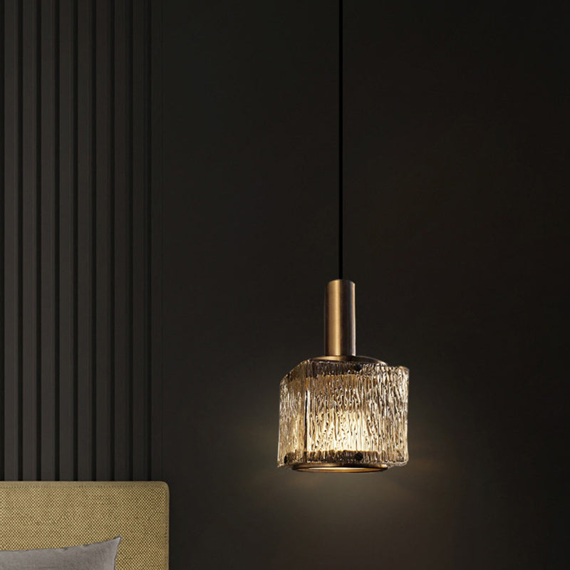 Contemporary Luxury Rectangular Copper Glass 1-Light Pendant Light For Living Room