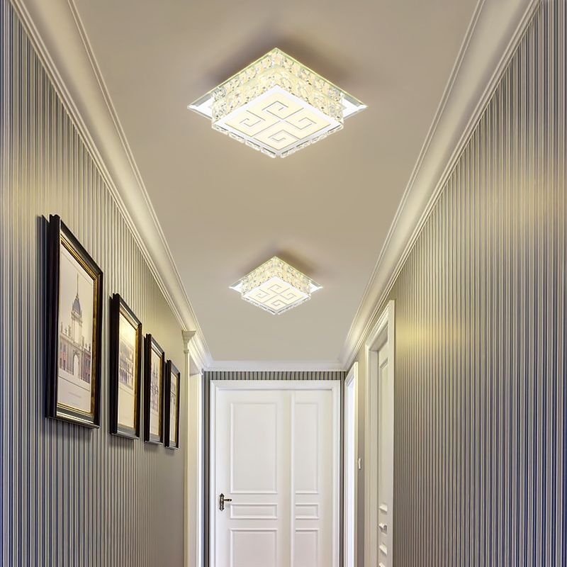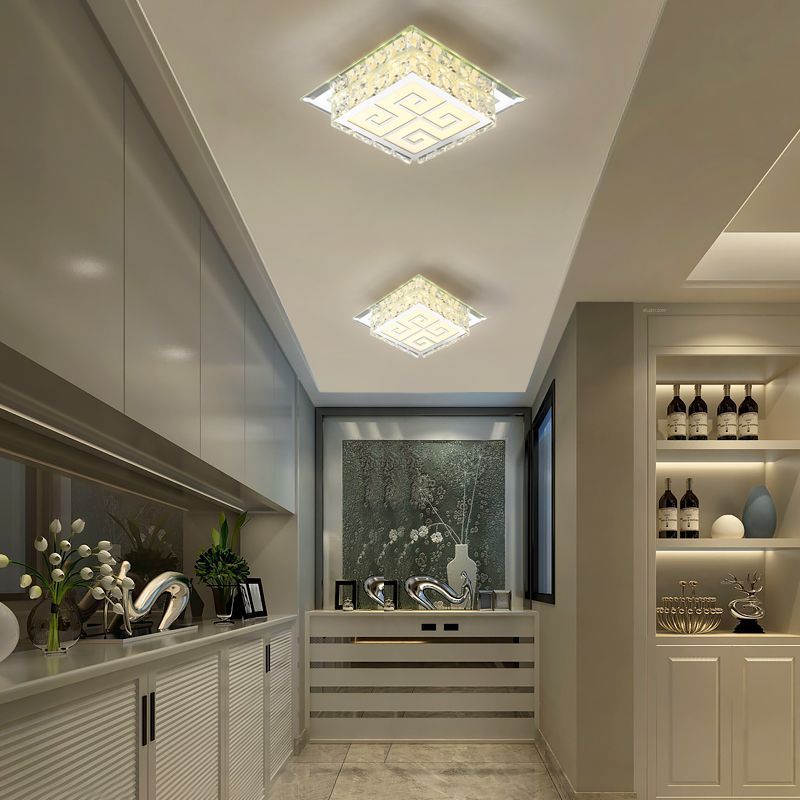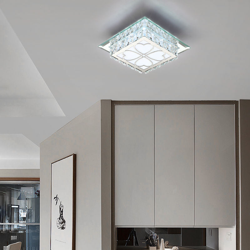 Contemporary Luxury Square Glass Crystal LED Flush Mount Ceiling Light For Living Room