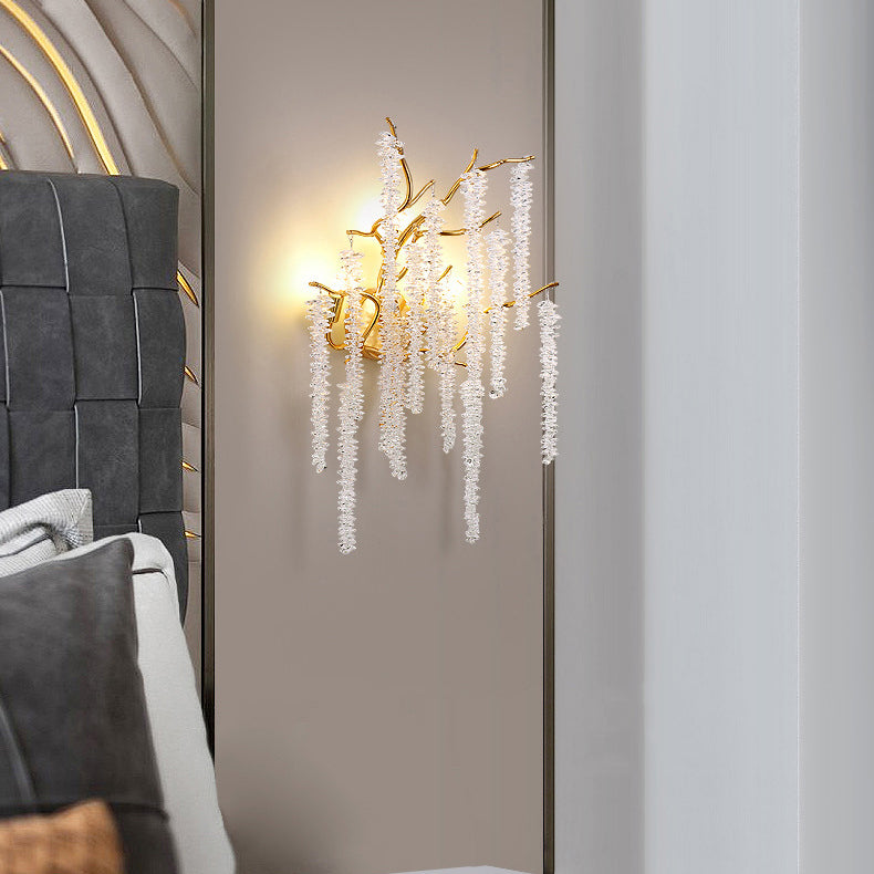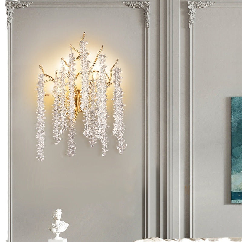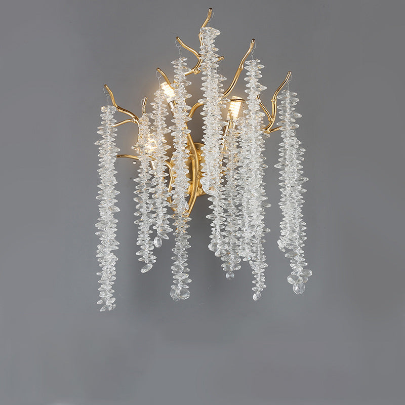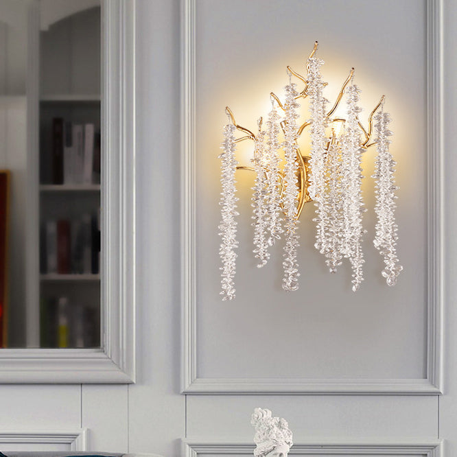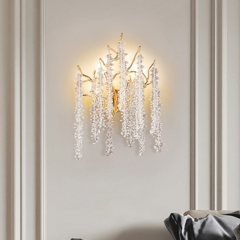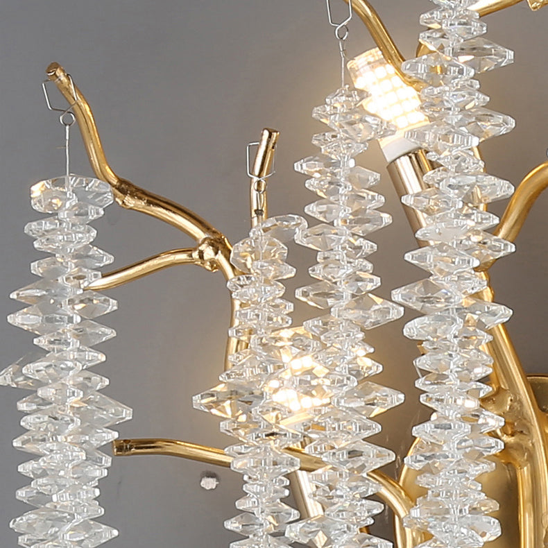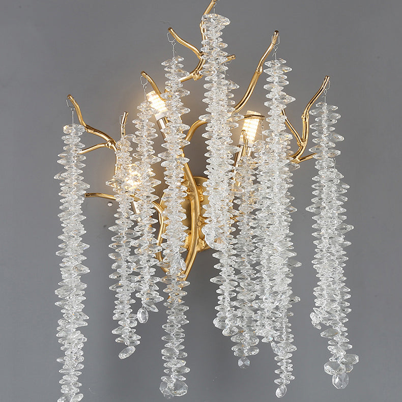Contemporary Luxury Tree Branches Tassel Crystal Aluminum 3-Light Wall Sconce Lamp For Living Room