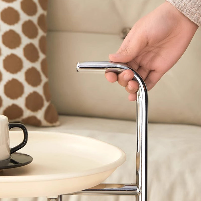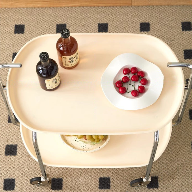 Contemporary Nordic ABS & Carbon Steel Oval Movable Side Table 2-Tier With Wheels & Handles For Living Room & Bedroom