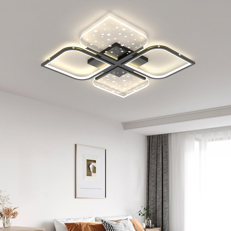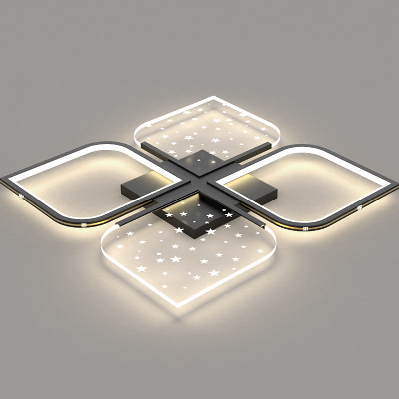 Contemporary Nordic Aluminum Iron Acrylic Four Leaf Clover Starry Star LED Semi-Flush Mount Ceiling Light For Bedroom