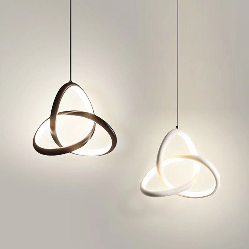 Contemporary Nordic Aluminum Iron Silica Geometric Intertwined Ring LED Pendant Light For Bedside