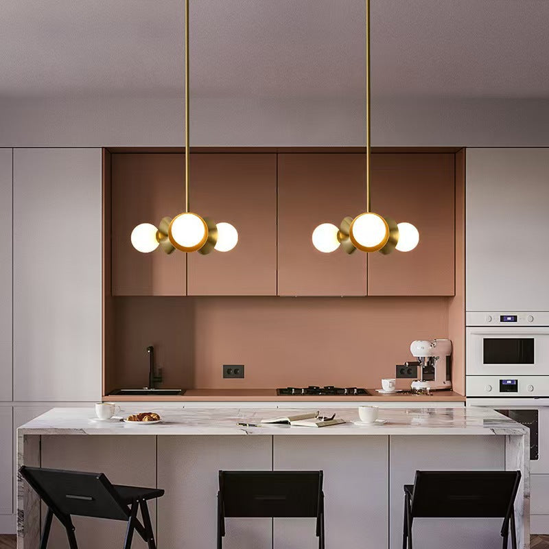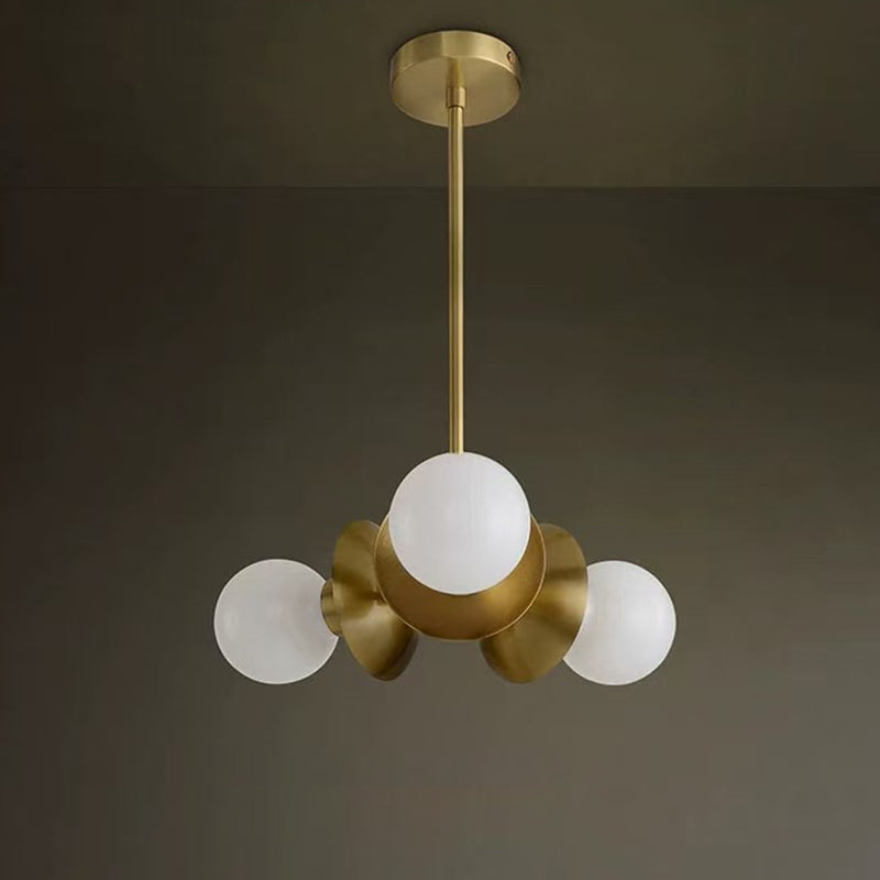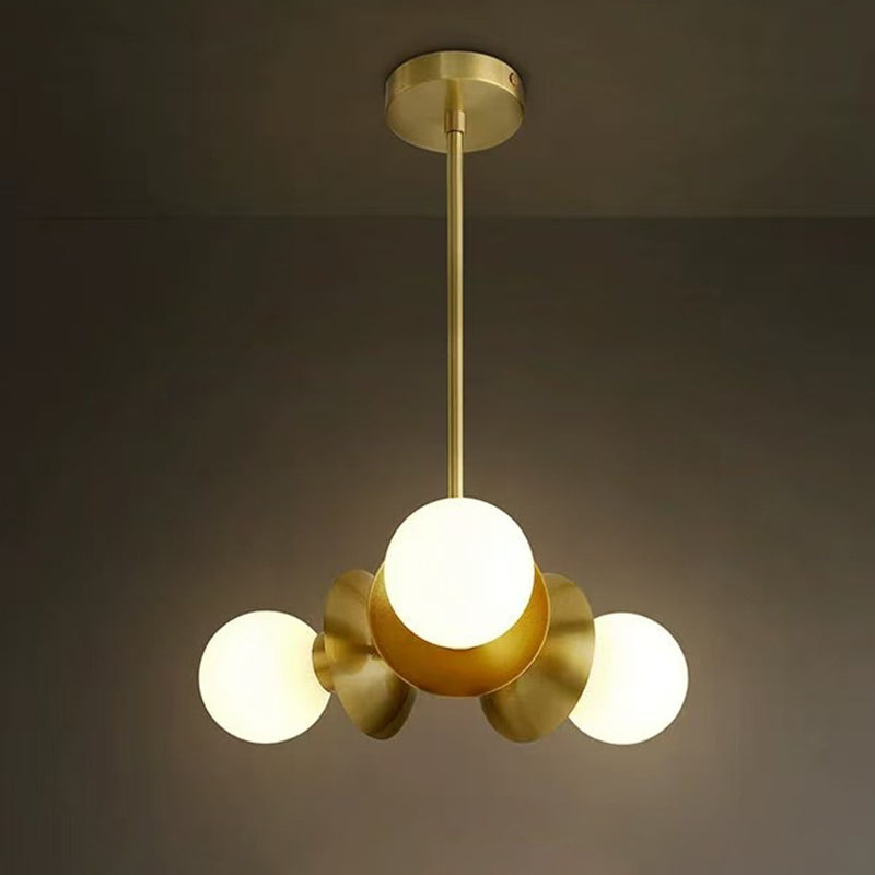 Add a refined touch to your space with this contemporary Nordic chandelier, crafted from premium brass and glass in a soft round design. Featuring three elegant lights and a warm gold finish, it's perfect for bedrooms, living rooms, and dining rooms.