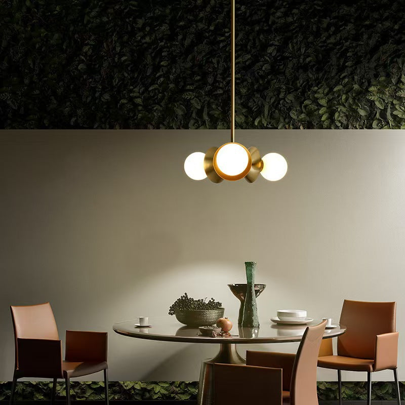 Contemporary Nordic Brass & Glass Round 3-Light Chandelier For Bedroom, Living Room, And Dining Room