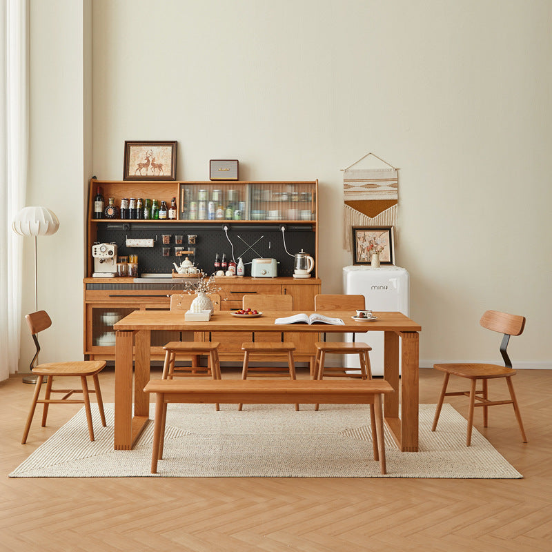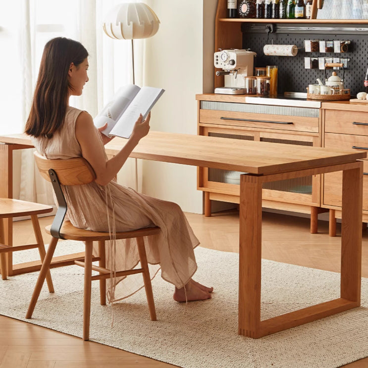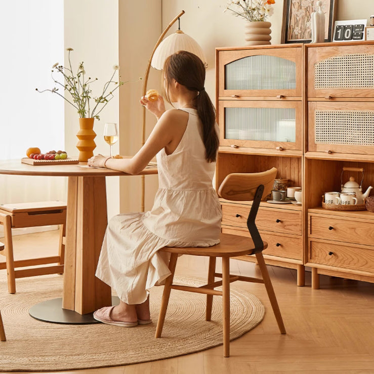 Contemporary Nordic Cherry Wood Iron Curved Square Dining Chair Backrest For Dining Room