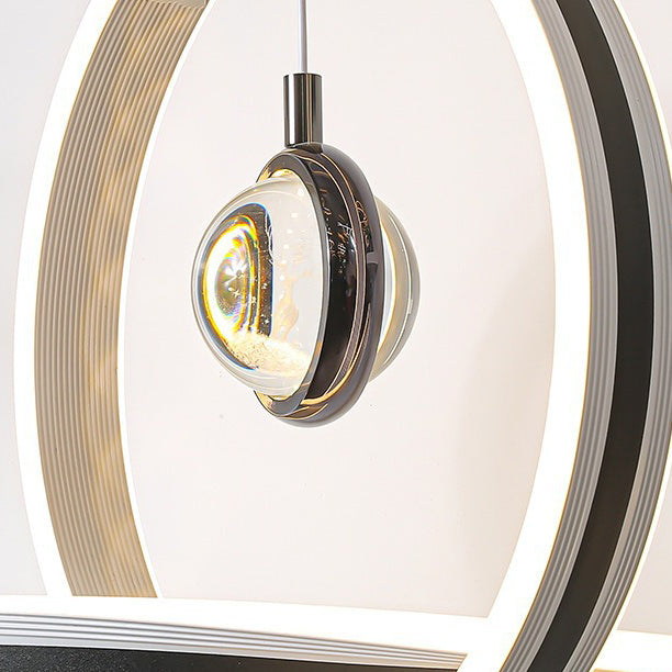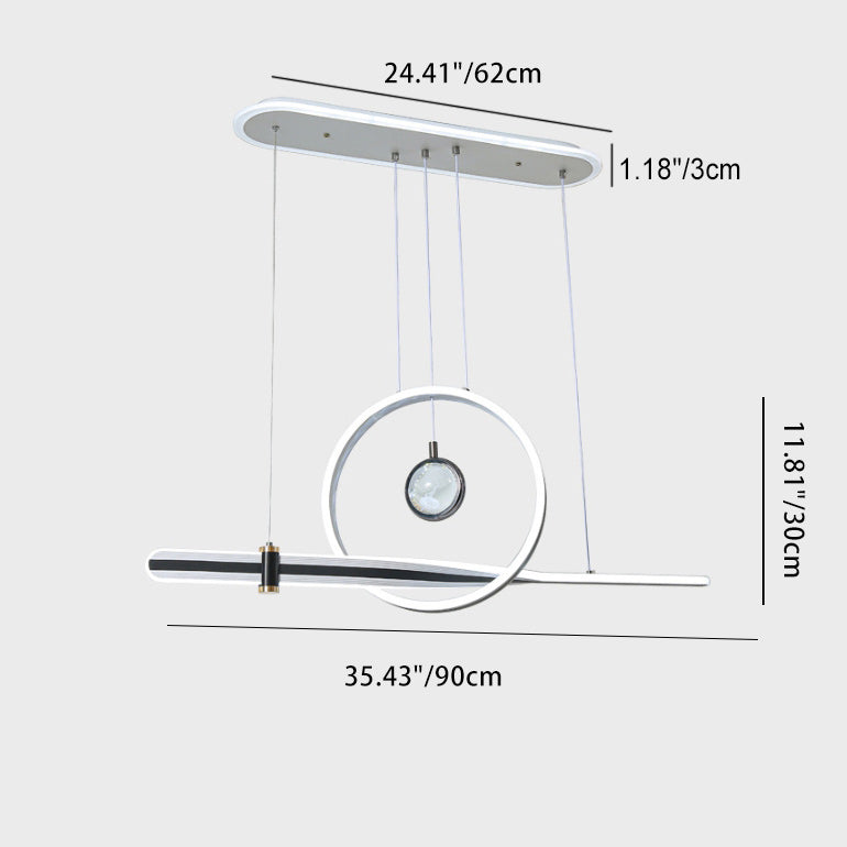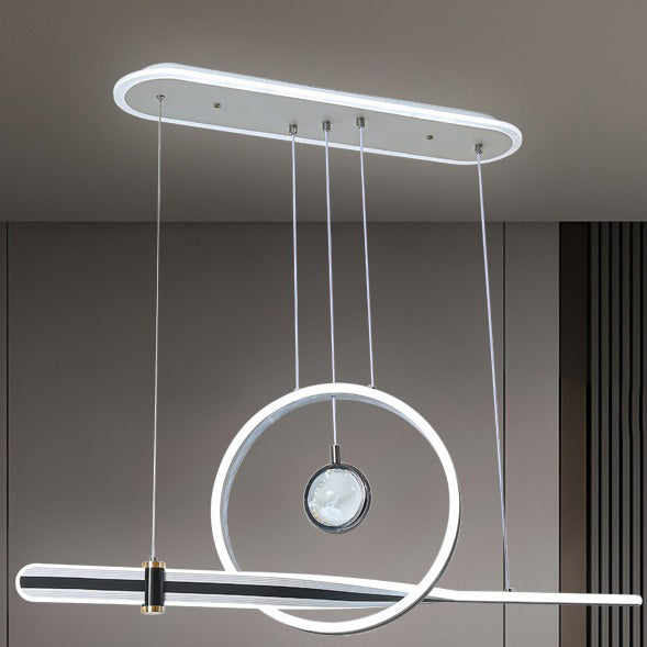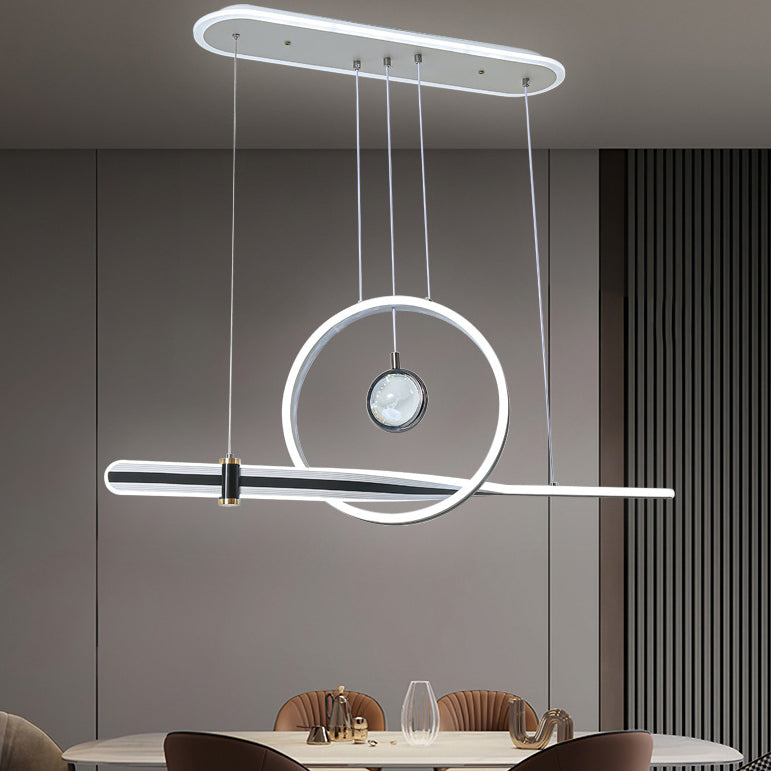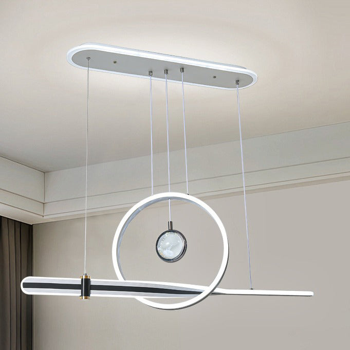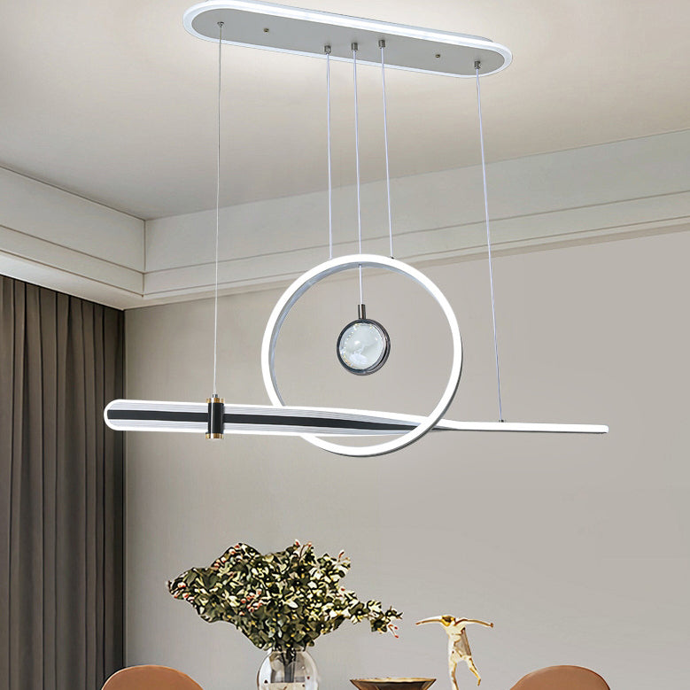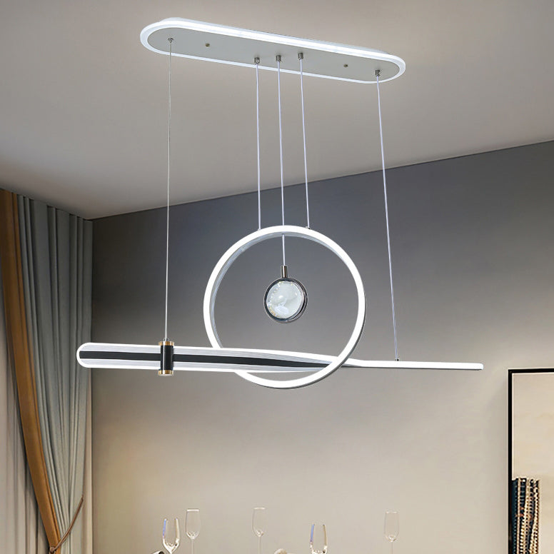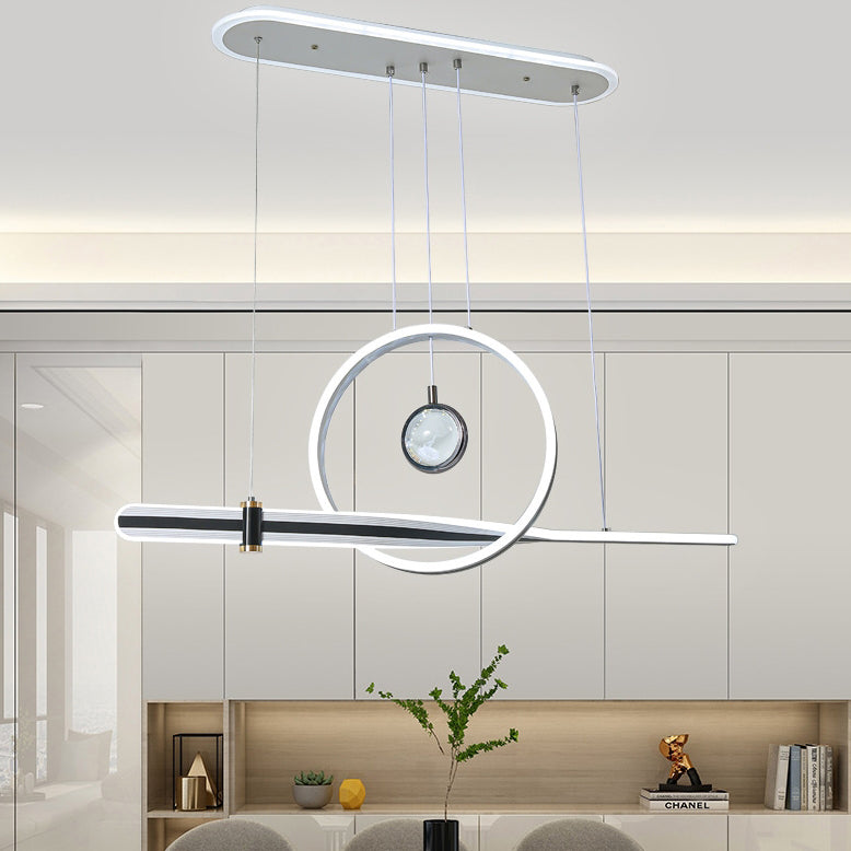 Contemporary Nordic Circle Strip Iron Aluminum Silica LED Chandeliers Island Light For Dining Room