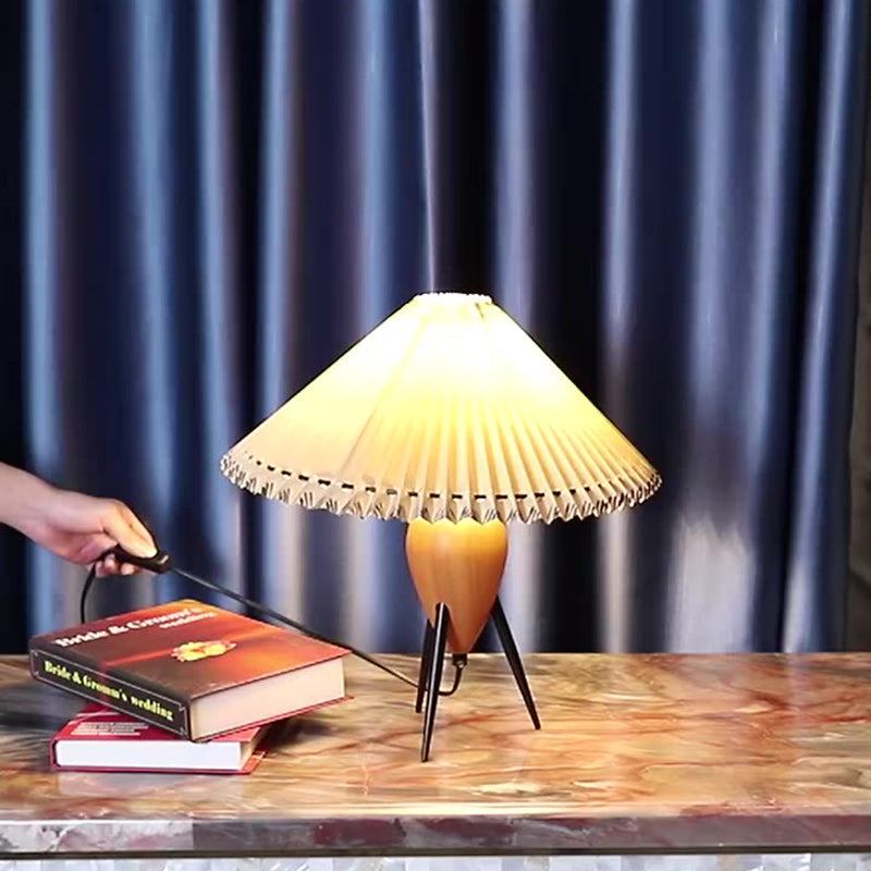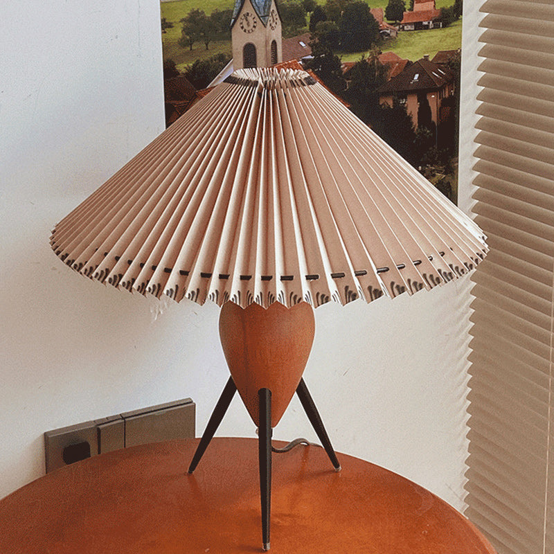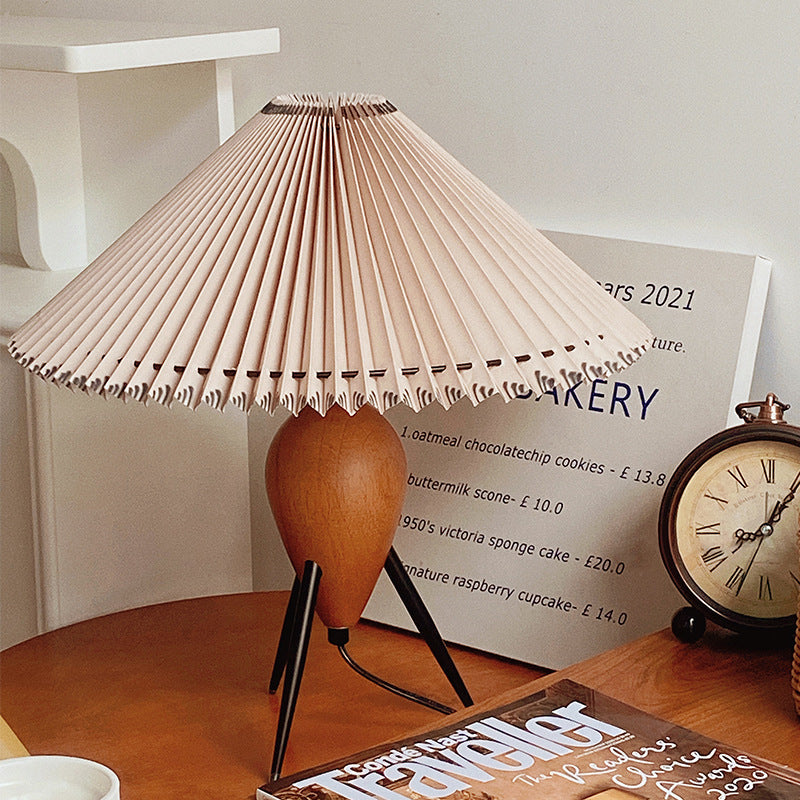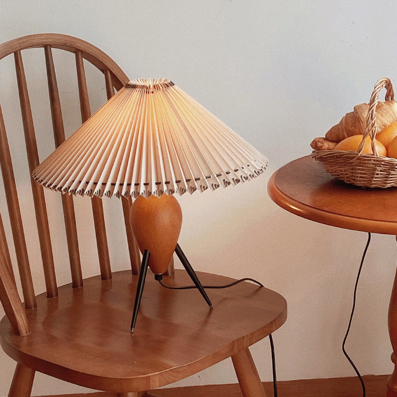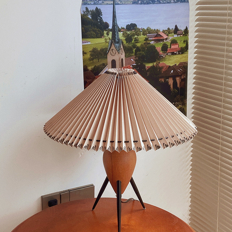 Contemporary Nordic Cone Steel Wood Fabric 1-Light Table Lamp For Living Room