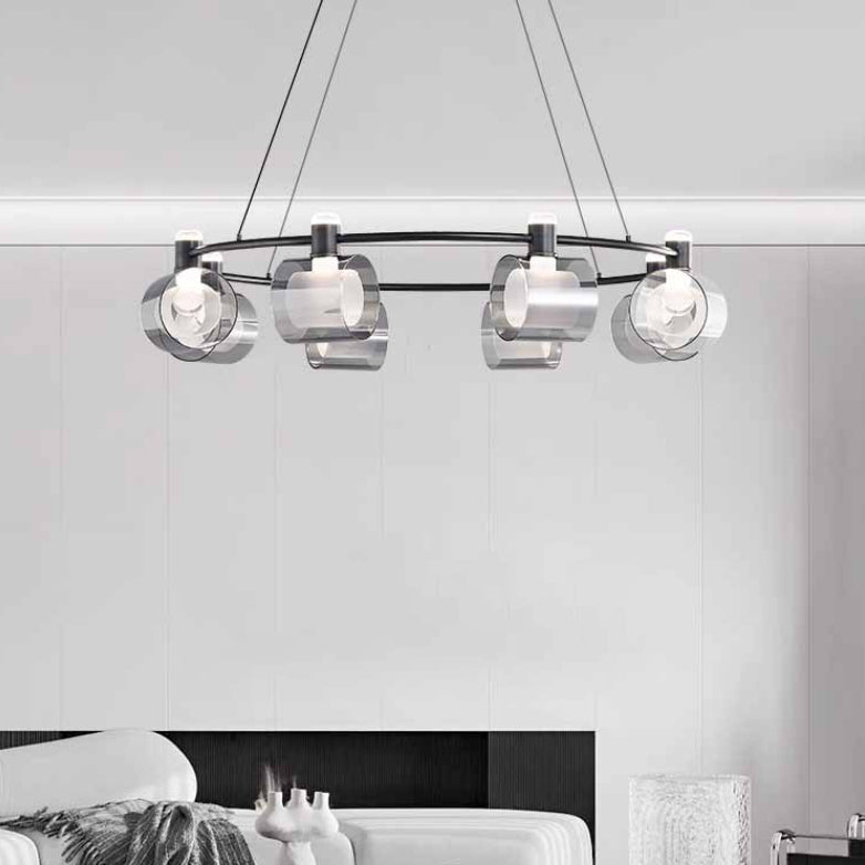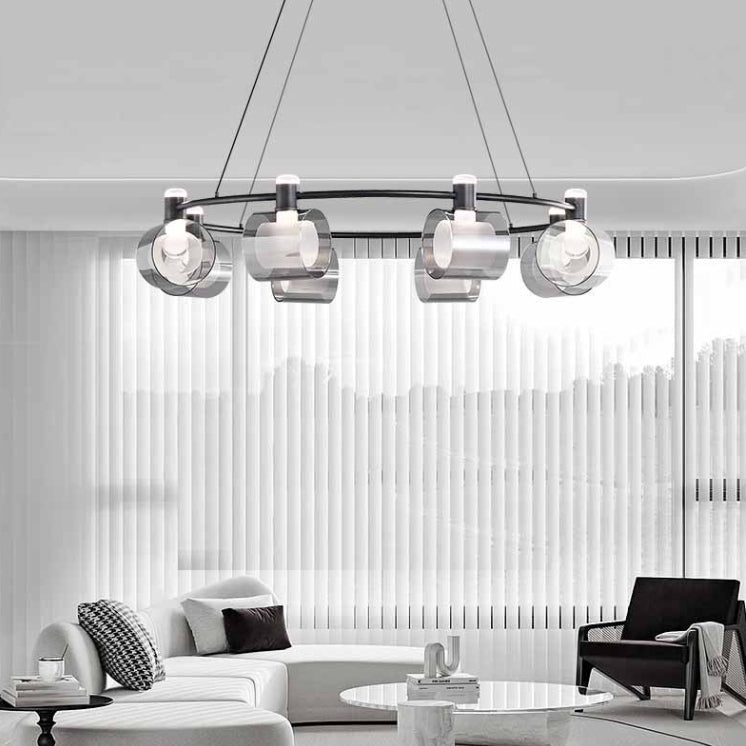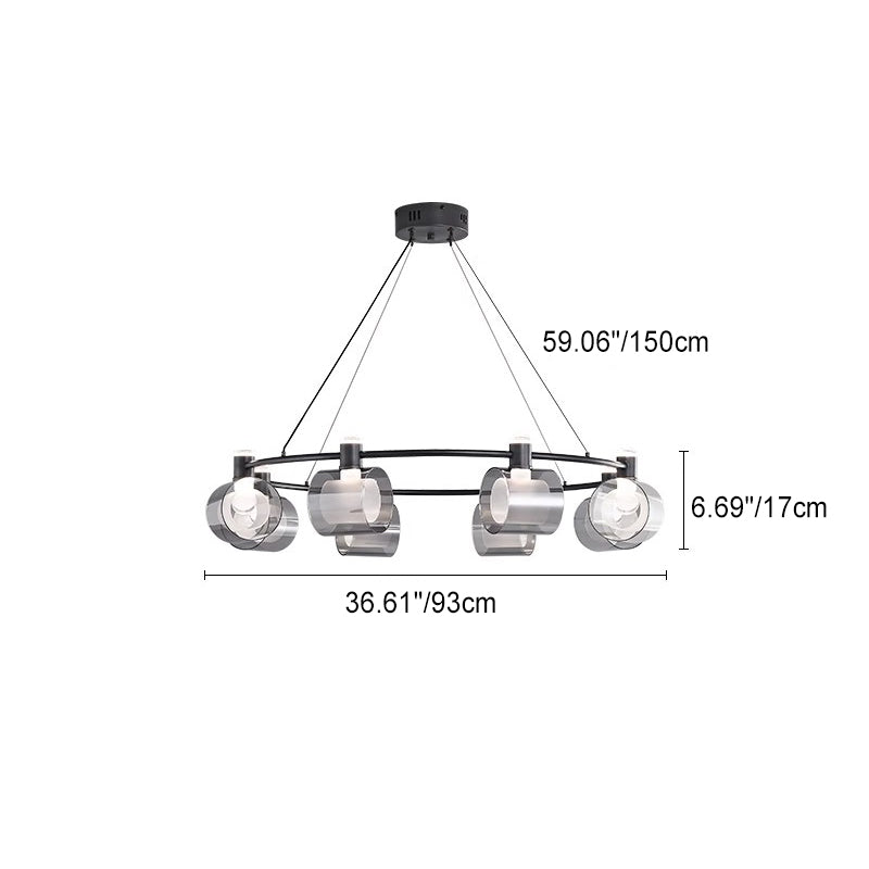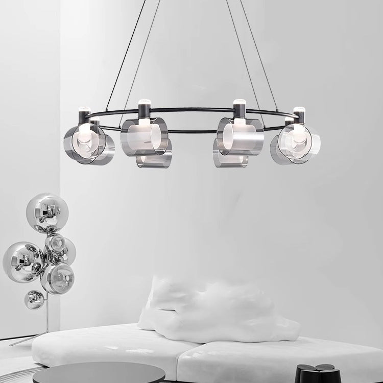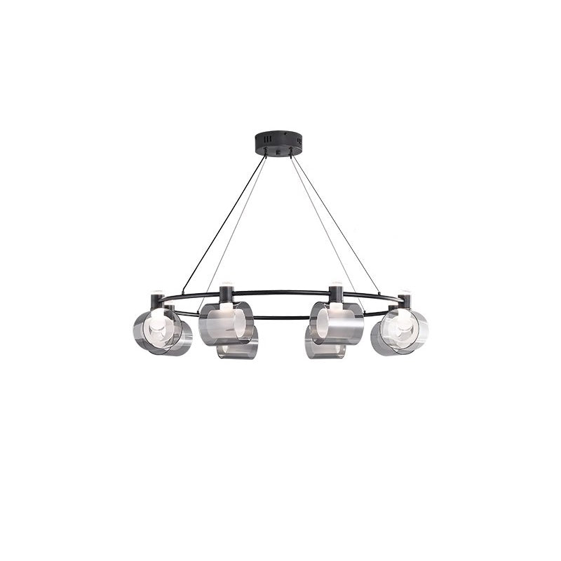 Contemporary Nordic Copper Geometric Circle Acrylic Shade LED Chandelier For Dining Room