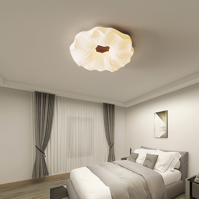 Contemporary Nordic Cream Flower Acrylic Lampshade Iron LED Flush Mount Ceiling Light For Bedroom