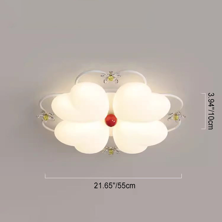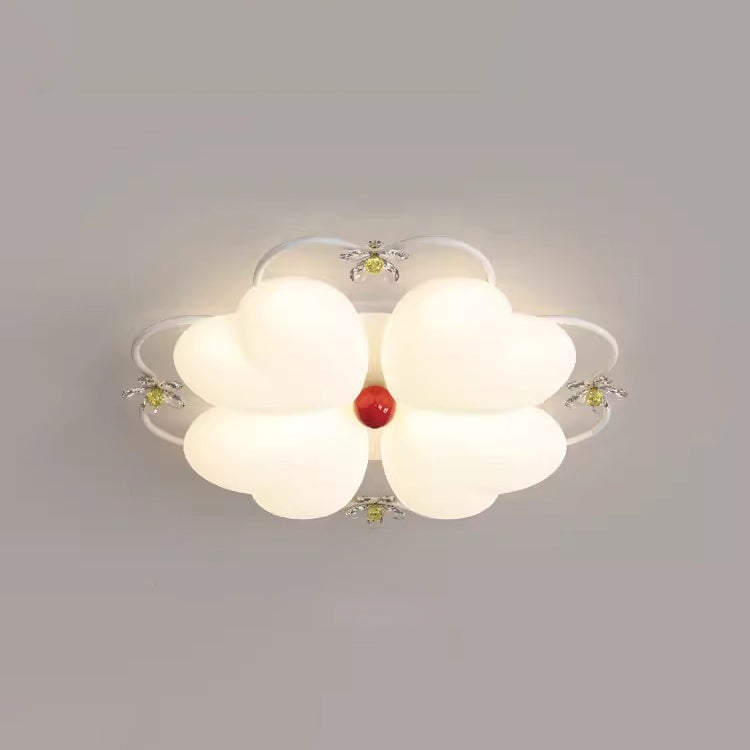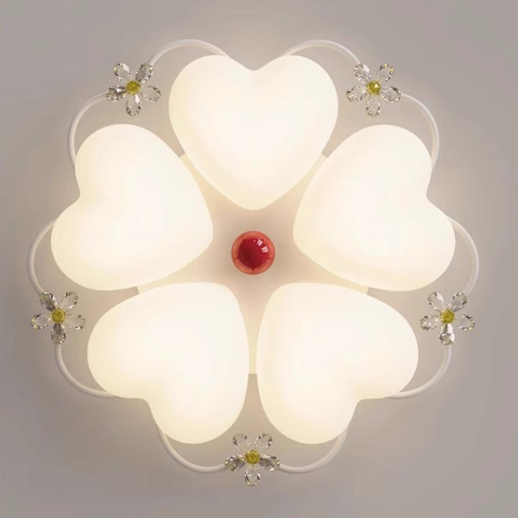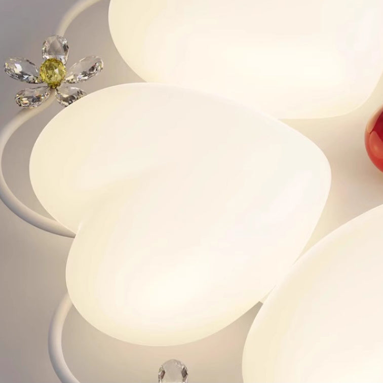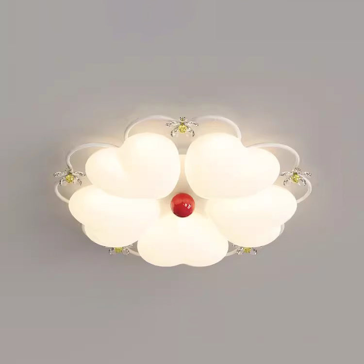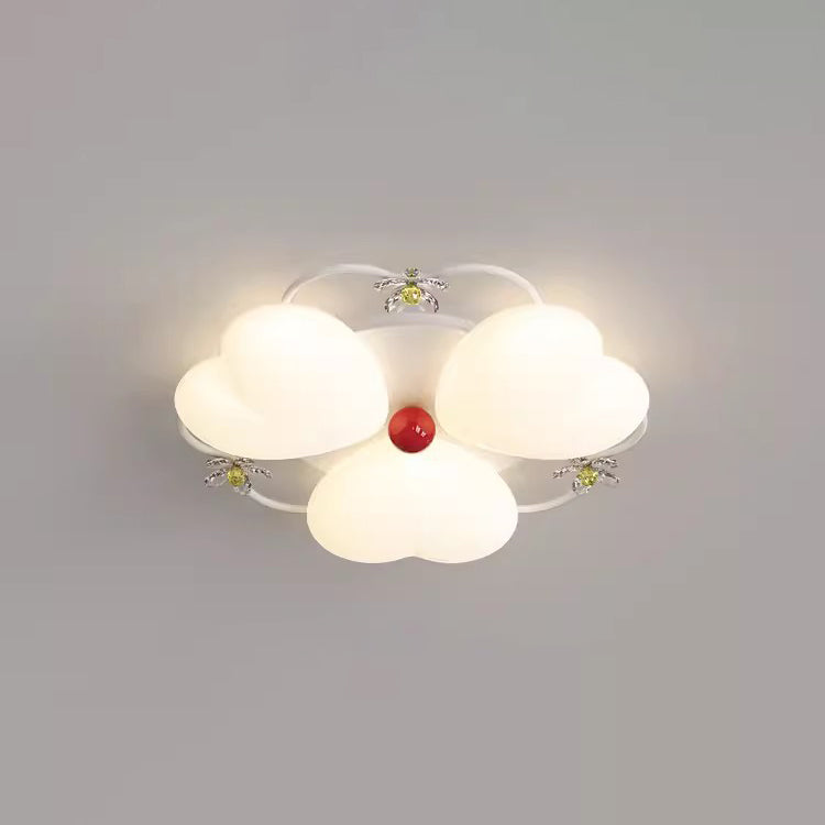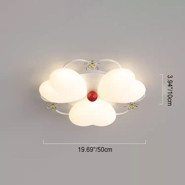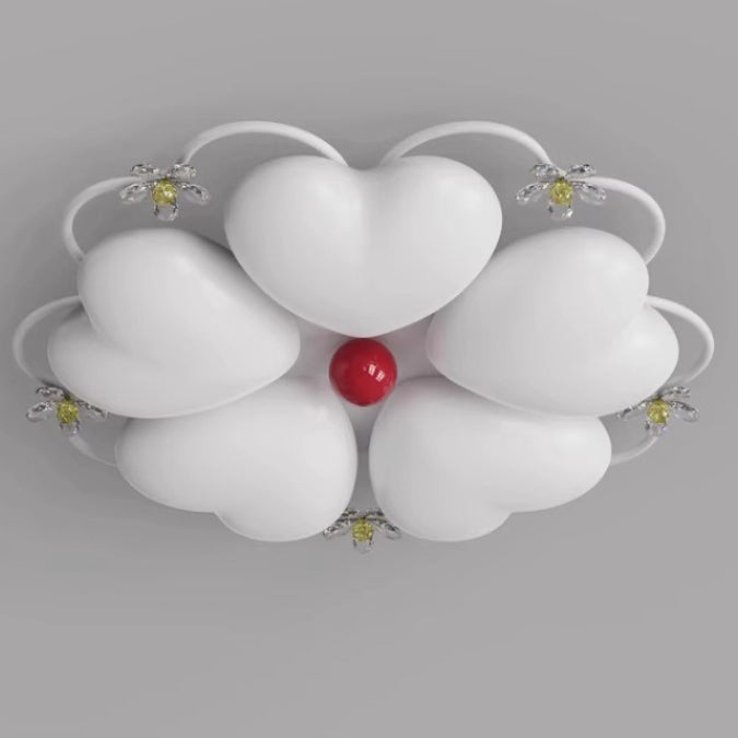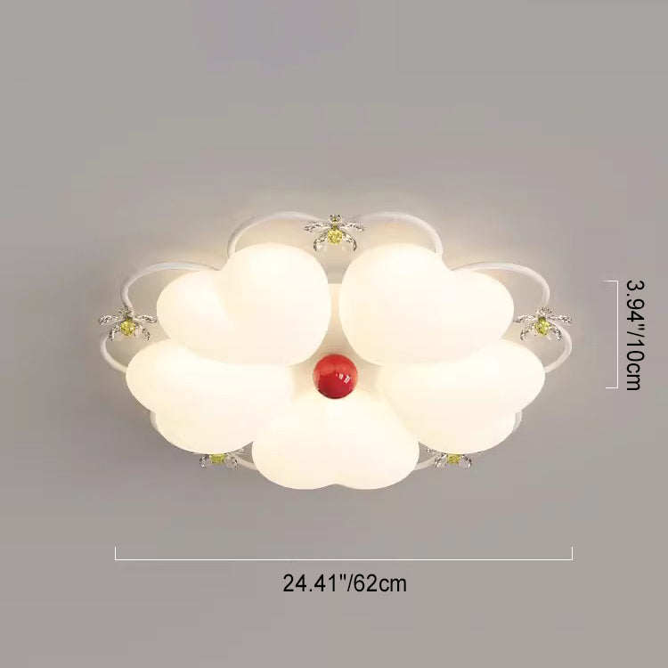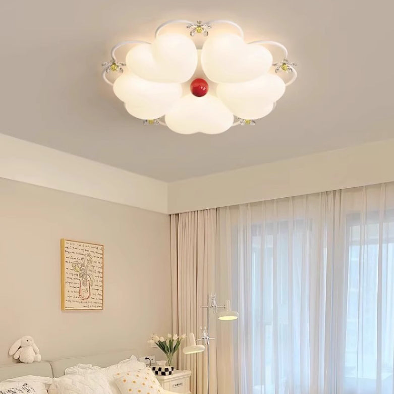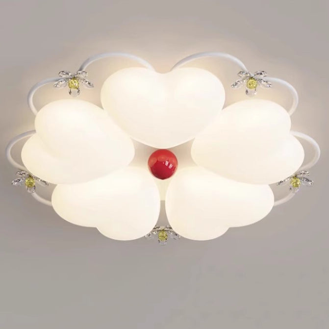 Contemporary Nordic Cream Flower Stitching Heart Ball Acrylic Iron PE LED Flush Mount Ceiling Light For Bedroom
