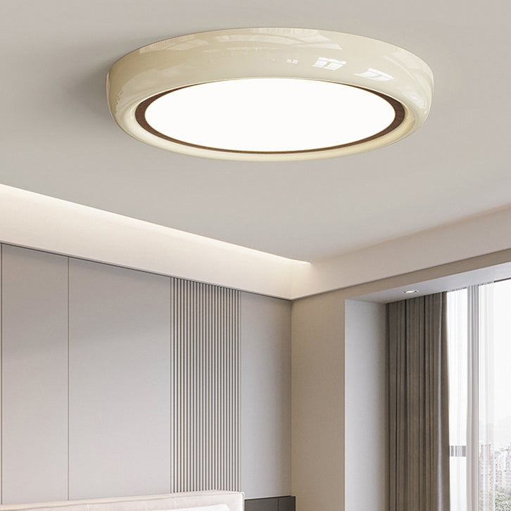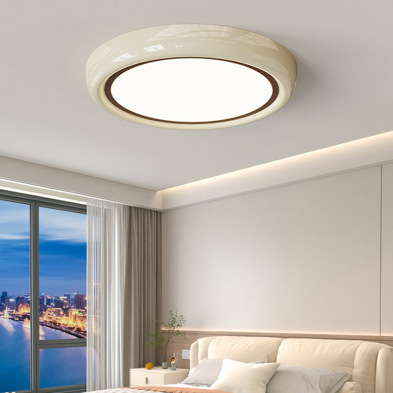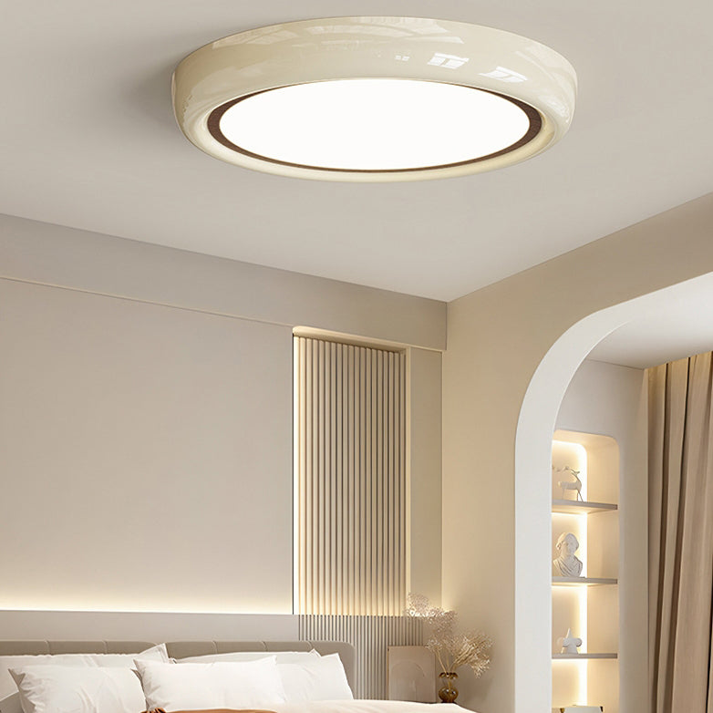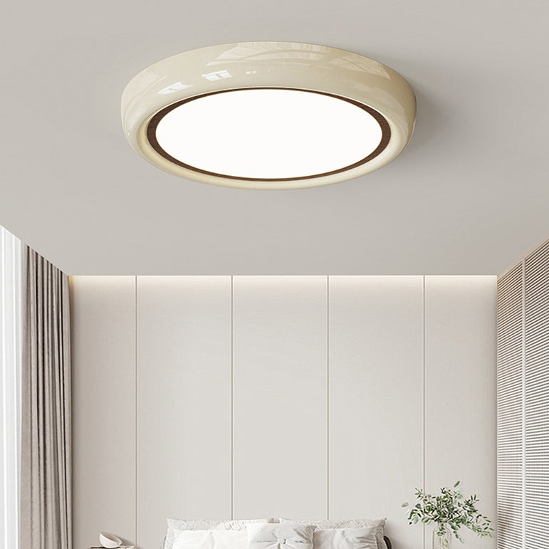 Contemporary Nordic Cream Iron Acrylic Round LED Flush Mount Ceiling Light For Bedroom