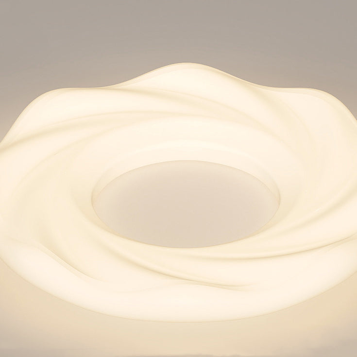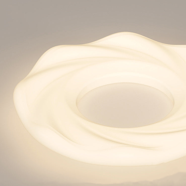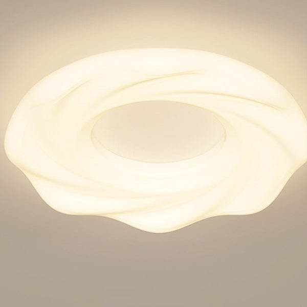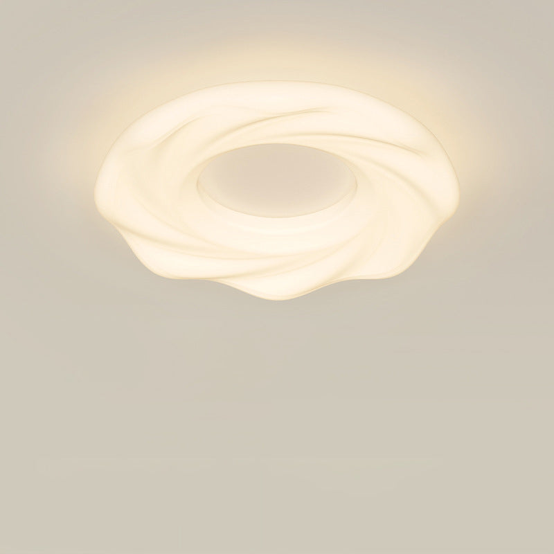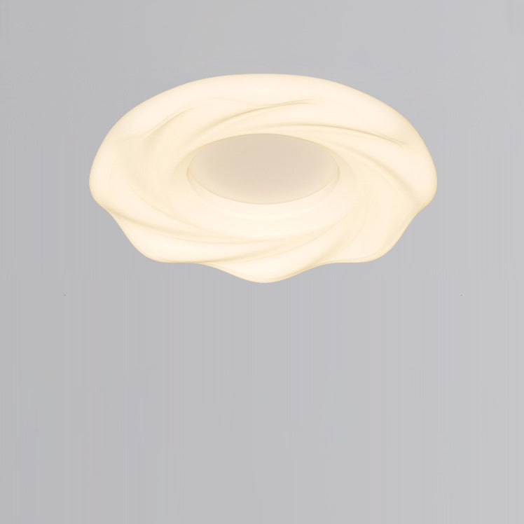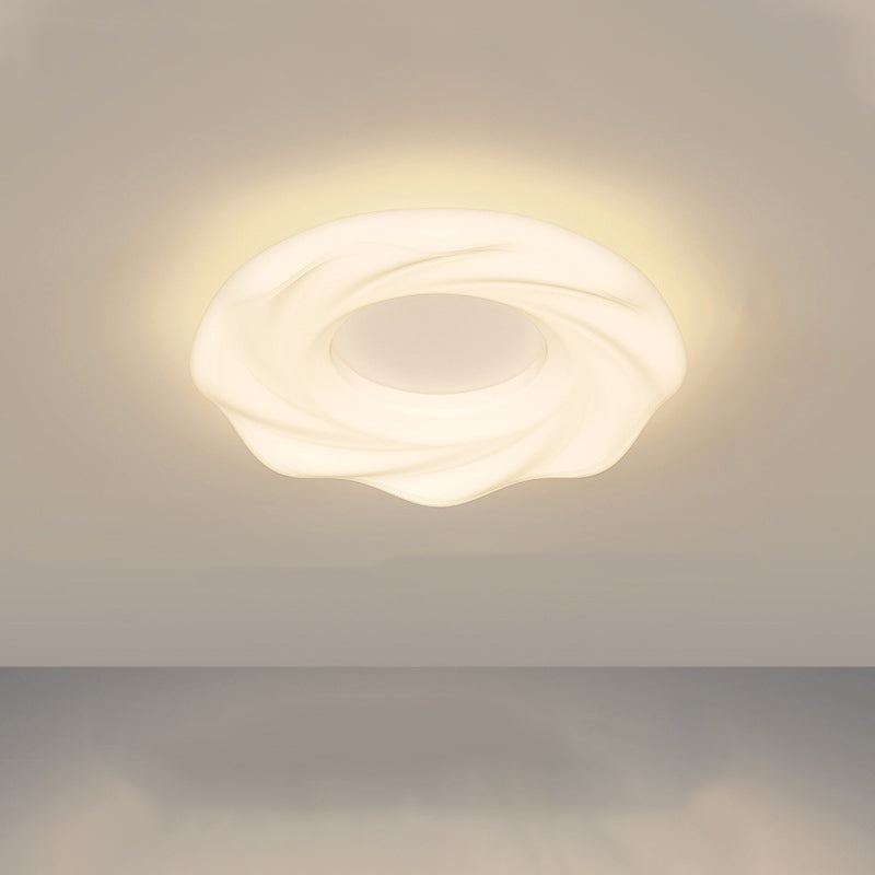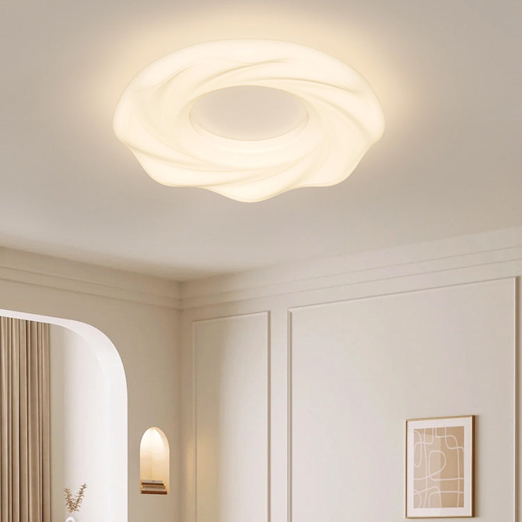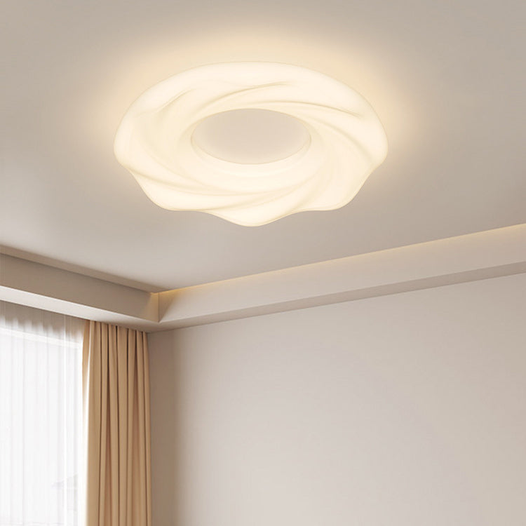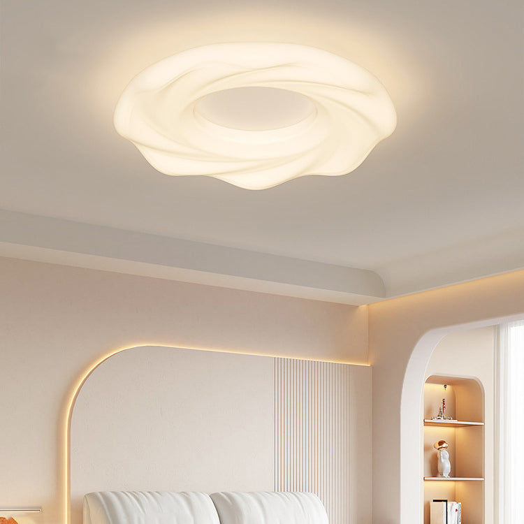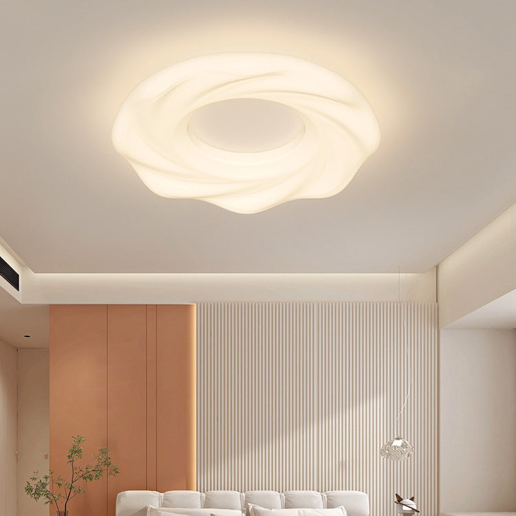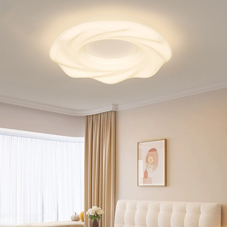 Contemporary Nordic Cream Iron PE Round Cookie LED Flush Mount Ceiling Light For Bedroom
