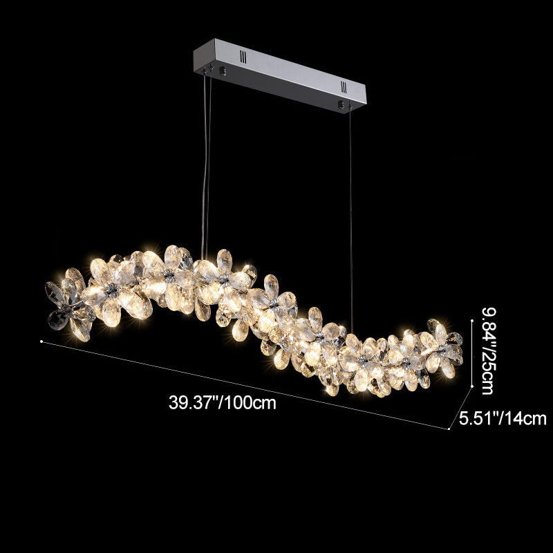 Contemporary Nordic Curve Flowers Crystal Hardware LED Chandelier Island Light For Dining Room