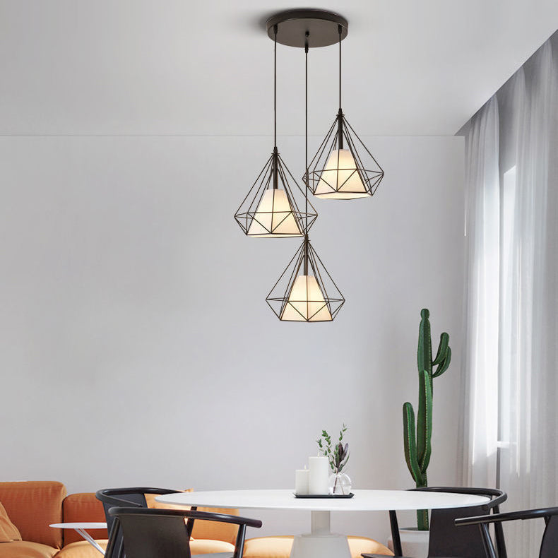 Contemporary Nordic Diamond Iron Fabric 3 - Light Pendant Light For Dining Room
