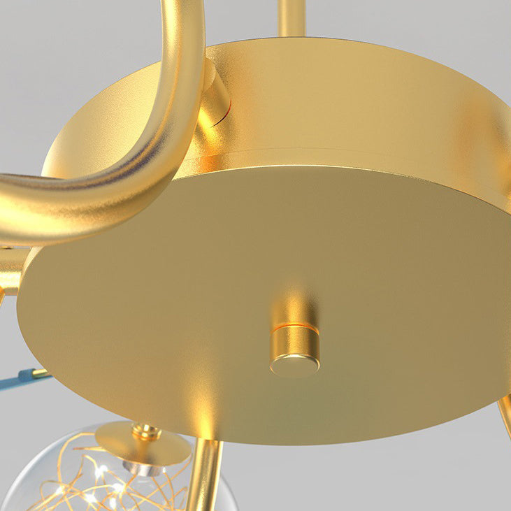 Contemporary Nordic Dome Baby's Breath Orbs Branch Curved Rod Iron Glass LED Chandeliers For Living Room